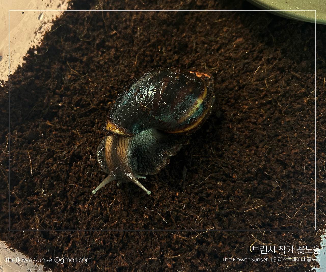 오늘도 아들은 칙칙 달팽이 사육통에 습도를 조절한다.