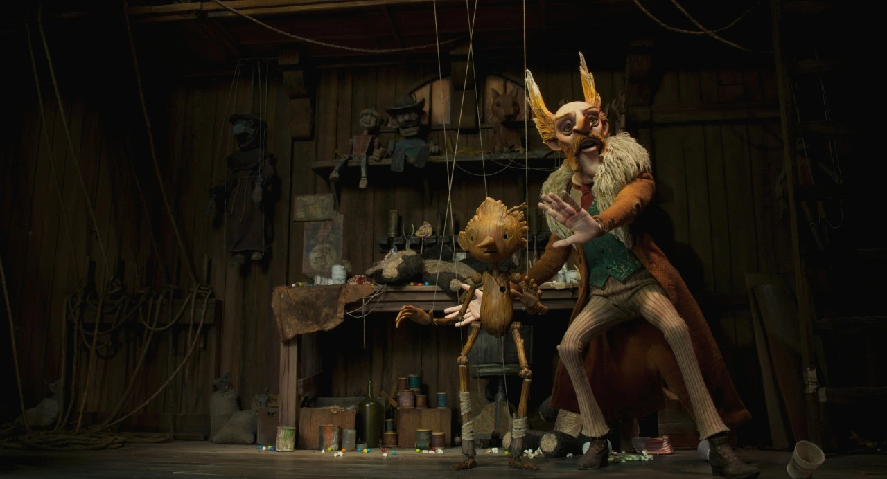 이 영화가 스톱모션 애니메이션이라는 사실은 그 전제에 부합하는 듯 보인다. 내가 보고 있는 인물과 배경이 대부분 손으로 빚어졌다는 사실을 대부분의 관객은 인지하며 영화를 보았을 것이다. 그러므로 <피노키오>는 존재 자체가 일종의 피노키오다. 제페토가 만든 피노키오가 생명을 얻은 것처럼 제작진들이 만든 인형들은 영화가 되어 살아 숨 쉰다. 영화라는 거짓에게 숨결을 불어넣은 것이다.