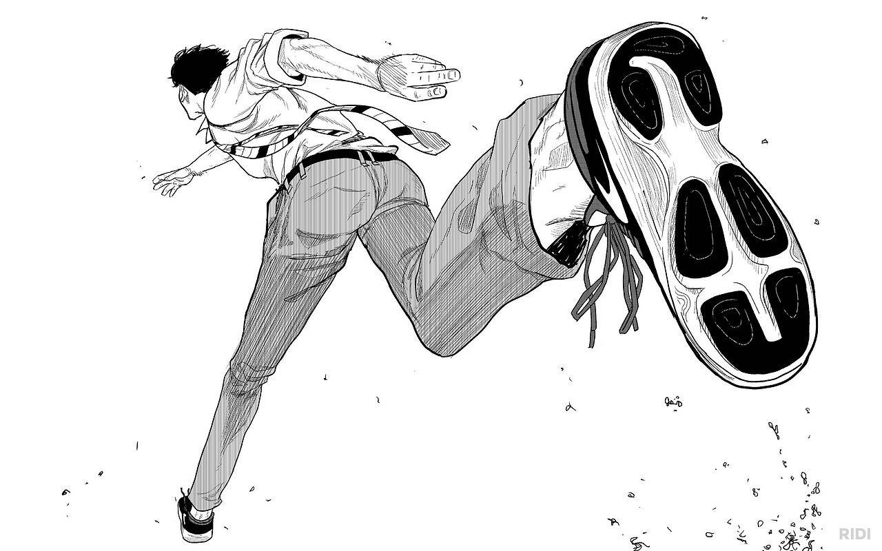 토가시는 마침내 그를 따라다니던 어린 코미야의 잔상과 처음으로 마주한다. "토가시. 달릴 셈이야?" "응. 당연히 진지하게." 이것이 달리기를 향한 토가시의 대답이자, 그가 발견한 초심이다. 그러니 반드시 돌아와야 하는 스타트 라인이다. 다음 페이지, 토가시는 이미 달리기 시작했다. 그곳에 있는 것은 달려 나가는 토가시가 아니라, 코미야를 박차고 이미 출발해 버린 그의 손이다. 여전히 사각의 경계는 견고하지만, 이 장면에서 작가는 토가시의 전신이 아니라 손만을 앞세운다. 몸 전체가 아니라 출발의 의지만이라도 틀보다 먼저 나아가게 하기 위해서. 만화의 형식이 허락한 최선의 탈주다. 운동회 장면에서 코미야의 발, 그리고 토가시의 손을 보며 느꼈다. 이 만화는 지금 전력질주를 하고 있구나.