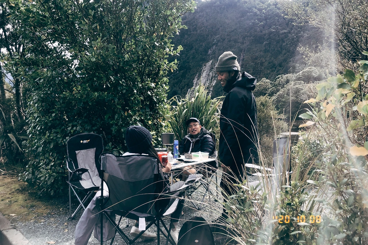 이미 식후경을 즐겼지만 크루즈 관광 후에도 여전히 배가 고팠던 우리는 주차장에서 라면을 끓여 먹고 플런져에 커피를 내려 마시며 휴식을 취하다가 20분 정도 트랙을 걸었다. 걷는 중에 트랙 양 쪽으로 작은 나무 모종을 심으시는 분들을 보았다. 뿐만 아니라 우리가 가고 돌아오는 길에 밀포드의 고고한 길목을 정비하는 여러 기관의 사람들을 볼 수 있었다. 밀포드 사운드에서 볼 수 있는 '날 것의 자연'을 그대로 보존하기 위한 뉴질랜드 사람들의 열심을 느낄 수 있었다. 여기가 한국이었으면 가는 길 목에 늘어선 포장마차들과 계곡 위쪽으로 백숙집들을 여럿 볼 수 있었겠다고 장난 삼아 말했지만 한 구석은 씁쓸했다. 뉴질랜드는 자연을 훼손시키지 않는 범위에서 그 자체를 누리기 위해 정부도 국민들도 많은 노력을 하는 것 같다. 자연을 배려하는 태도는 어딜 가나 쉽게 보고 느낄 수 있다. 그래서인지 나도 좀 더 자연에 무해한 관광객으로 이 곳을 즐기고 싶은 마음이 자연스레 샘솟는다.