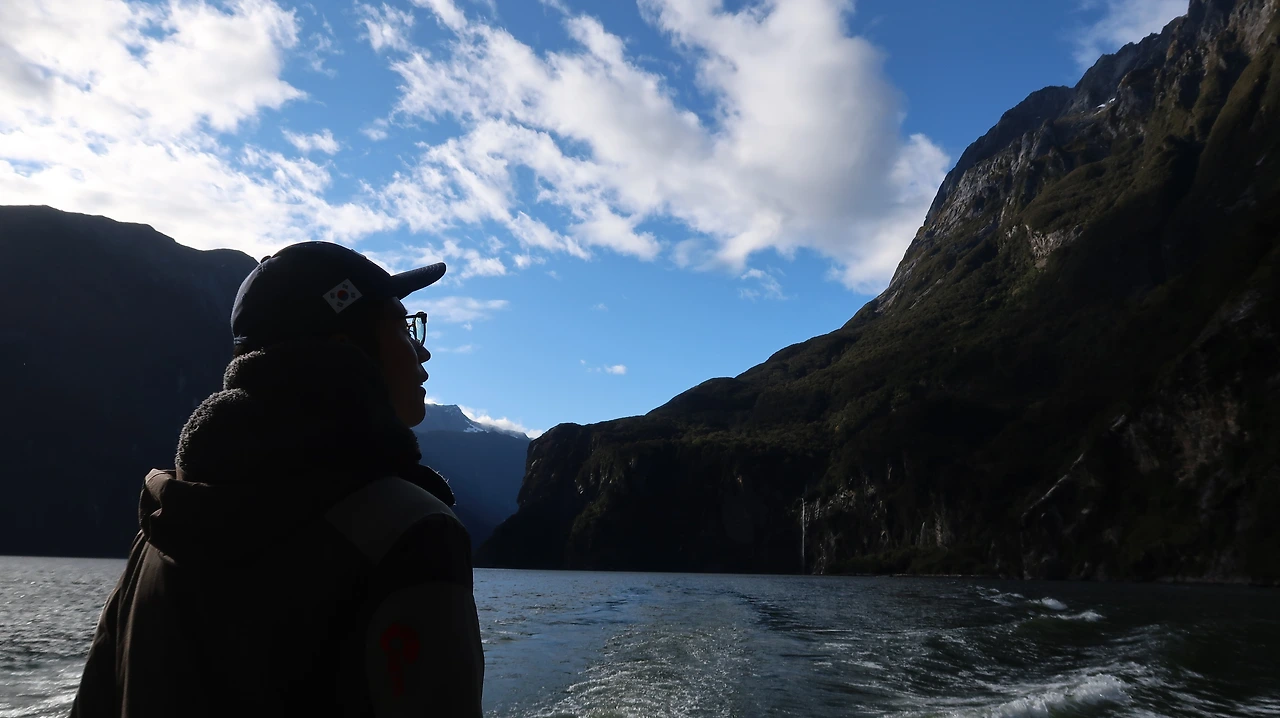 우리가 좋아하는 키위 할아버지 Don이 뉴질랜드에서 가장 좋아하는 장소, 밀포드 사운드! 오늘은 새벽 5시 30분에 알람을 듣고 바로 눈이 떠졌다. 내가 좋아하는 사람이 또한 좋아하는 장소라면 그곳이 어떤 곳일지 다른 곳보다 더 궁금해지고 기대가 된다. 밀포드 사운드는 워낙 뉴질랜드에서 유명한 관광지 중의 한 곳이다. 가는 길 또한 사람들을 쉽게 들여보내 주지 않는다. 날씨에 따라 밀포드로 가는 길목이 열릴 때가 있고 닫힐 때가 있다. 어제는 눈이 온다고 했었는데 감사하게도 오늘은 날이 맑게 개어서 그 고고한 길목이 우릴 맞아주었다. 가는 길 또한 너무나도 장엄해서 슬쩍 긴장이 되었다. 그곳에 닿은 사람만이 이 마음을 이해할 수 있으리.
