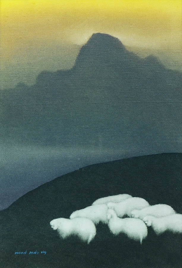 언덕 위에 양 떼가 있다.먹을 것을 찾아 떠나온 길이 점점 더 멀어져 간다. 더 갈 것인가 돌아갈 것인가. 그러나 첫발을 떼는 순간 무리는 앞으로 나아갈 것이다. 그 첫걸음의 용기가 성공과 실패를 좌우한다. Lamb -양을 닮은 사람들, 문상직 갈림길에서 두려움이 생길 때 이 작품을 보여주고 싶다.