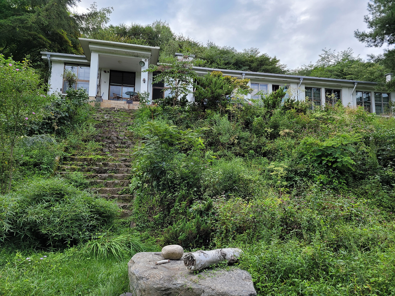 김차섭&김명희 작가님 작업공간은 춘천시 북산면 내평리 옛 초등학교 폐교 시설입니다. 전화를 드리고 방문을 드렸더니 흔쾌히 시간을 내주셨습니다. 공간은 수풀로 가득해서 풀 속을 헤쳐 건물로 들어가는 듯한데, 언덕 위 높은 곳에 건물이 위치해 있네요. 건물 앞에 두 분이 미리 나와 계셨습니다. 가파른 계단을 가로질러 올라가니 반갑게 맞아 주십니다.