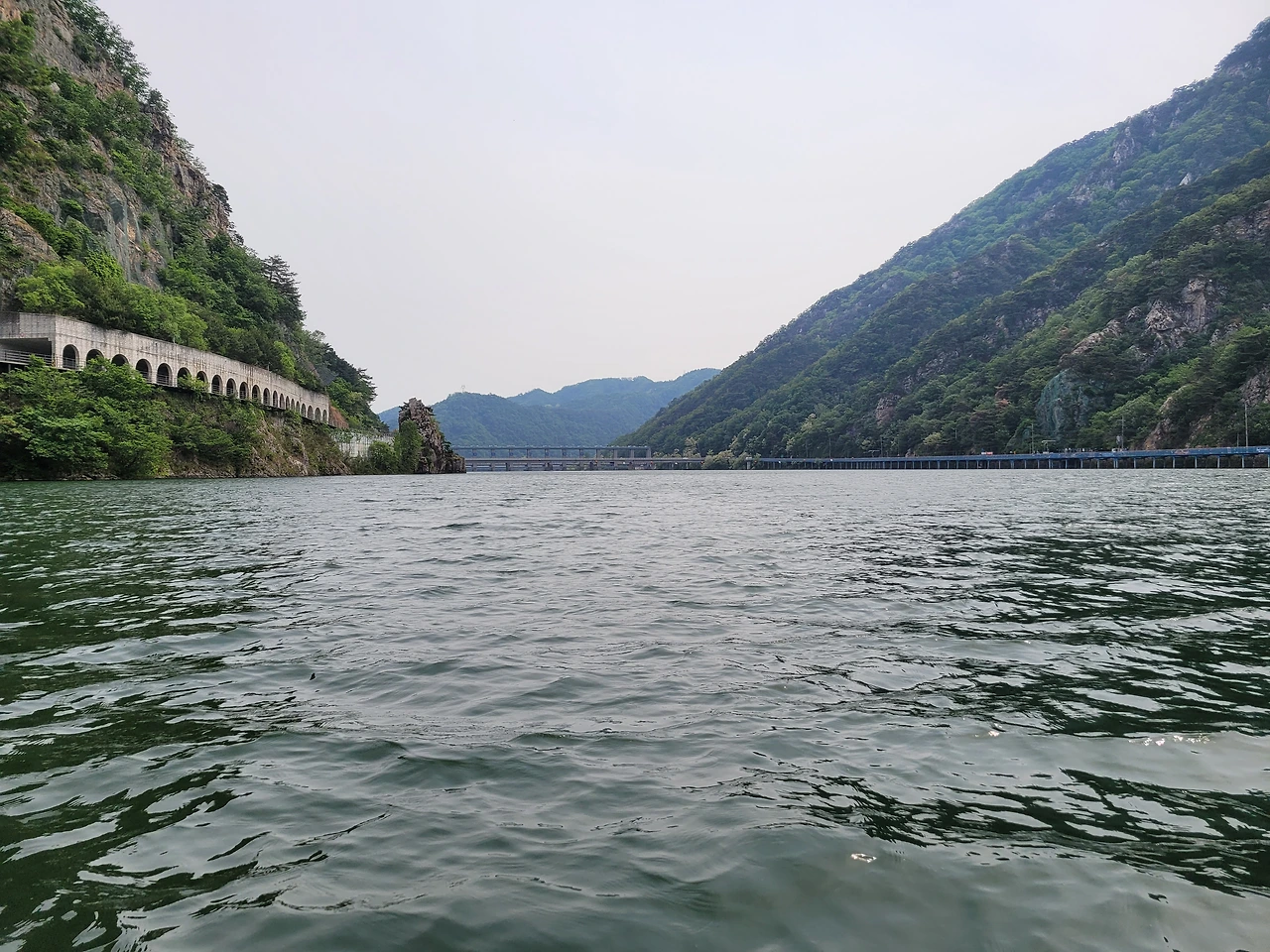 서울 방향인 의암댐 쪽을 향해 배가 움직이자 작은 섬과 삼악산, 드름산이 한눈에 들어오는 아름다운 풍경이 펼쳐졌다. 춘천의 역사가 보인다. 춘천 부사가 오가고 유배와 은거의 길목 그리고 의병들의 이동로 이기도 했던 석파령席破嶺, 삼한시대 맥국貊國의 성이라고 전해지며 왕건과 싸움에 진 궁예가 잠시 피신했었다는 삼악산성, 춘천으로 들어오는 대문이라 해서 문암門岩이라는 바위, 70도의 가파른 삼악산에 대피소로 지었다가 박정희 대통령의 별장으로도 사용되었다는 삼악 산장, 천년의 시간을 지키고 있는 삼악산 능선 아래 상원사上院寺다.