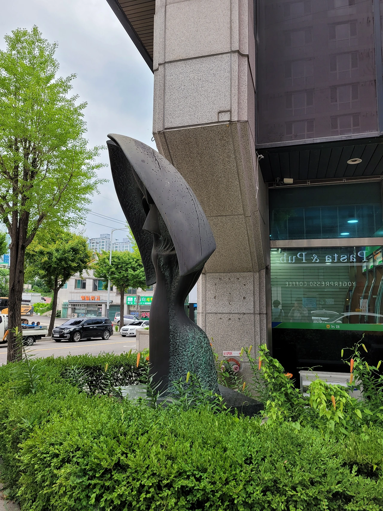 건물 앞 작은 화단을 조성하고 조각 작품을 세웠다.