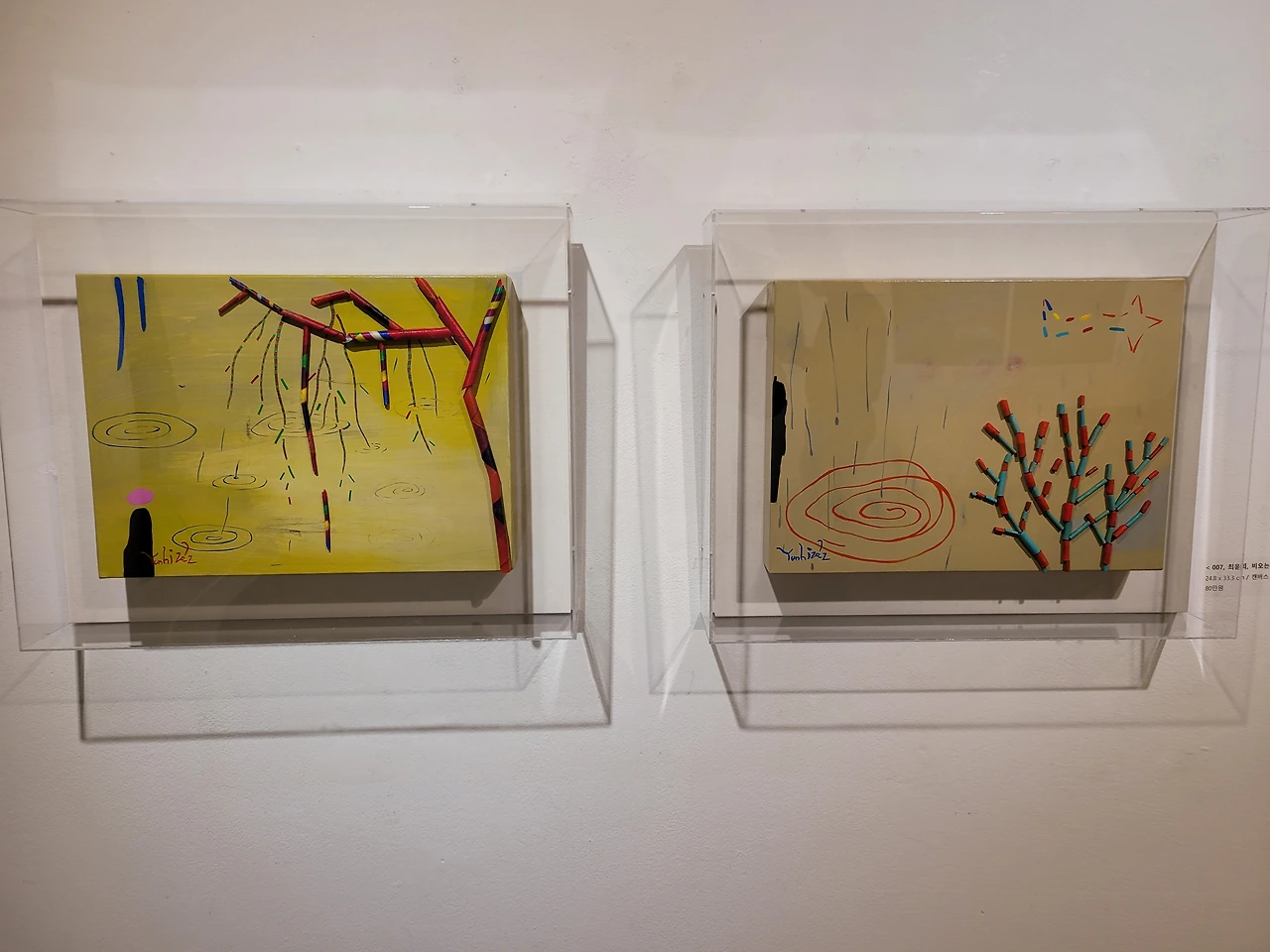 전시장의 작품 배치도 액자 소재에 따라 설치된 느낌이 재미있다. 작가는 계속된 변화를 추구하고 있다. 특히, 이번 전시에 여러 종류의 액자를 사용하여 자신의 작품에 맞는 것을 찾고 싸인의 위치에도 변화를 주며 작품의 완성도를 높이려는 의지가 보였다. 작품의 완성을 전시를 통해 검증하는 듯하다. 멋진 생각이다. 자신 스스로 바라본 것과 관객의 시각을 통해 더 검증된 절차를 확인할 수 있을 것 같은 생각이 든다.