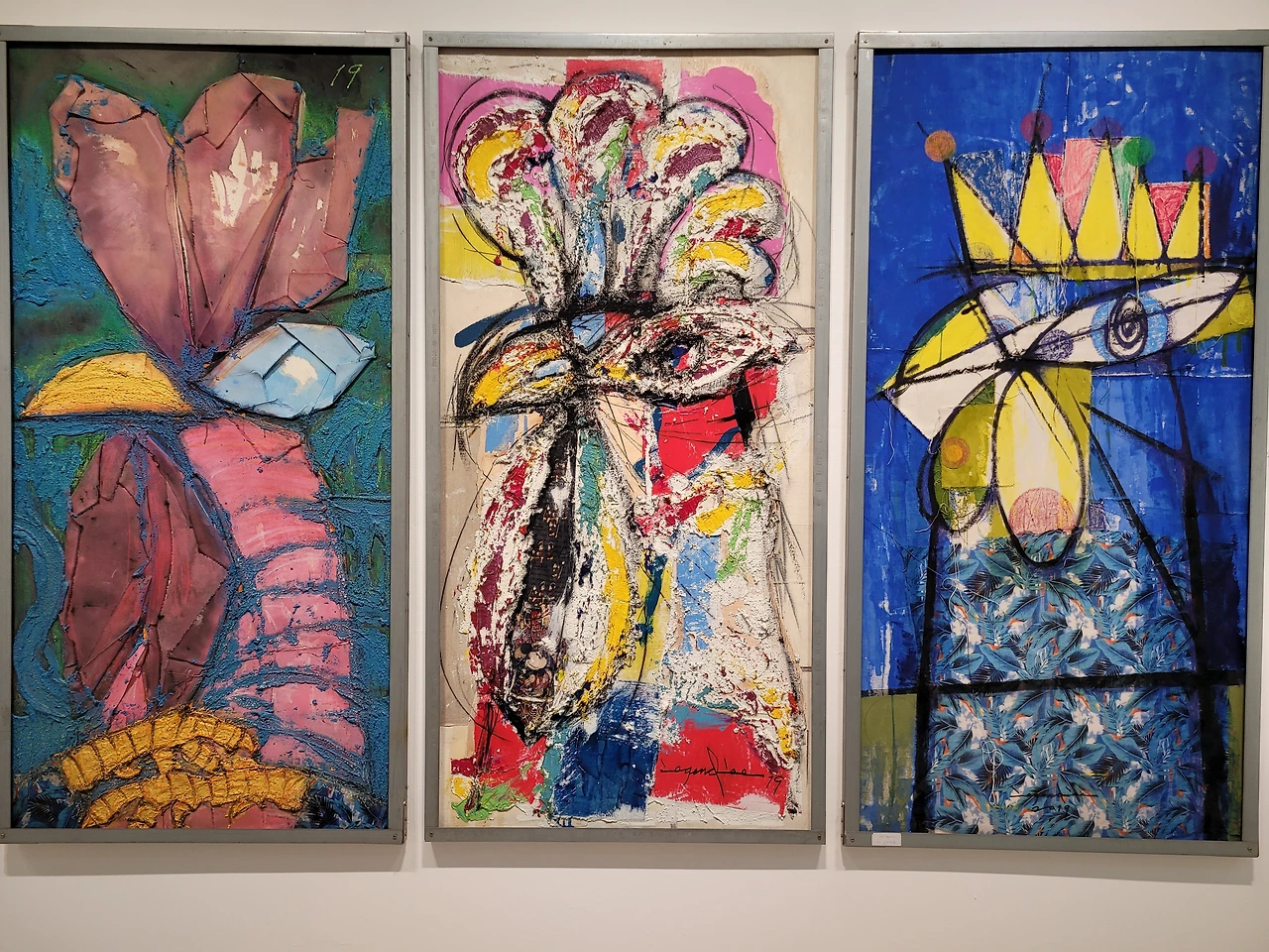 세 번째는 닭 부조 형태를나타낸 작품으로 물감이 녹아 굳어진 것을 붙여 작품을 했다고 한다. 바탕은 녹이 난 것 같은 푸른색을 띠고 있어 독특한 느낌을 자아낸다.