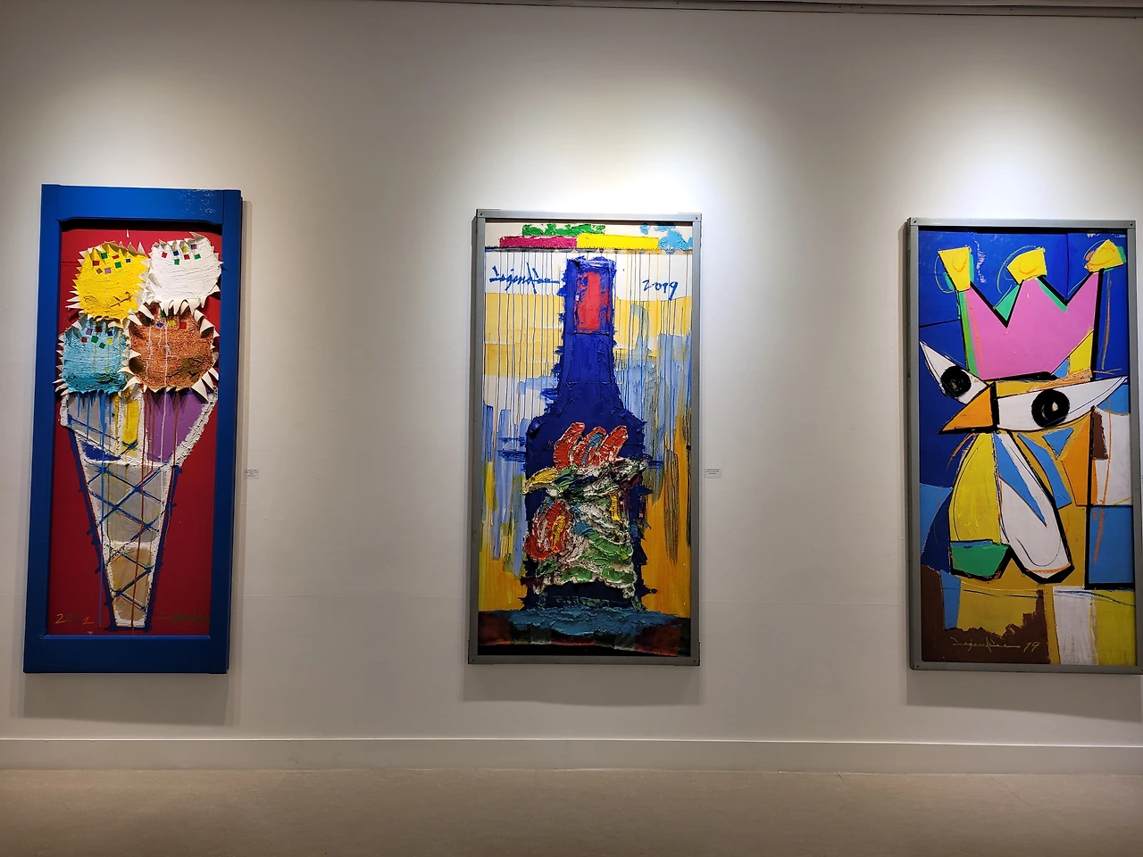 두 번째는 12지 친구들이라는 작품으로 열두 달의 띠 동물을 표현했는데 자세히 보면 한문으로 쓰인 글자(성誠= 言말씀 언 + 成이룰 성)가 보인다. 작가의 모친께서는 아들을 위해 매일같이 이 글자를 쓰시면서 아들이 성공한 작가가 되기를 기원하신다고 한다. 작가는 이 글씨를 통해 어머니의 마음을 작품에 녹여낸 것이다. 부모의 마음을 어찌 다 품을 수 있겠는가.