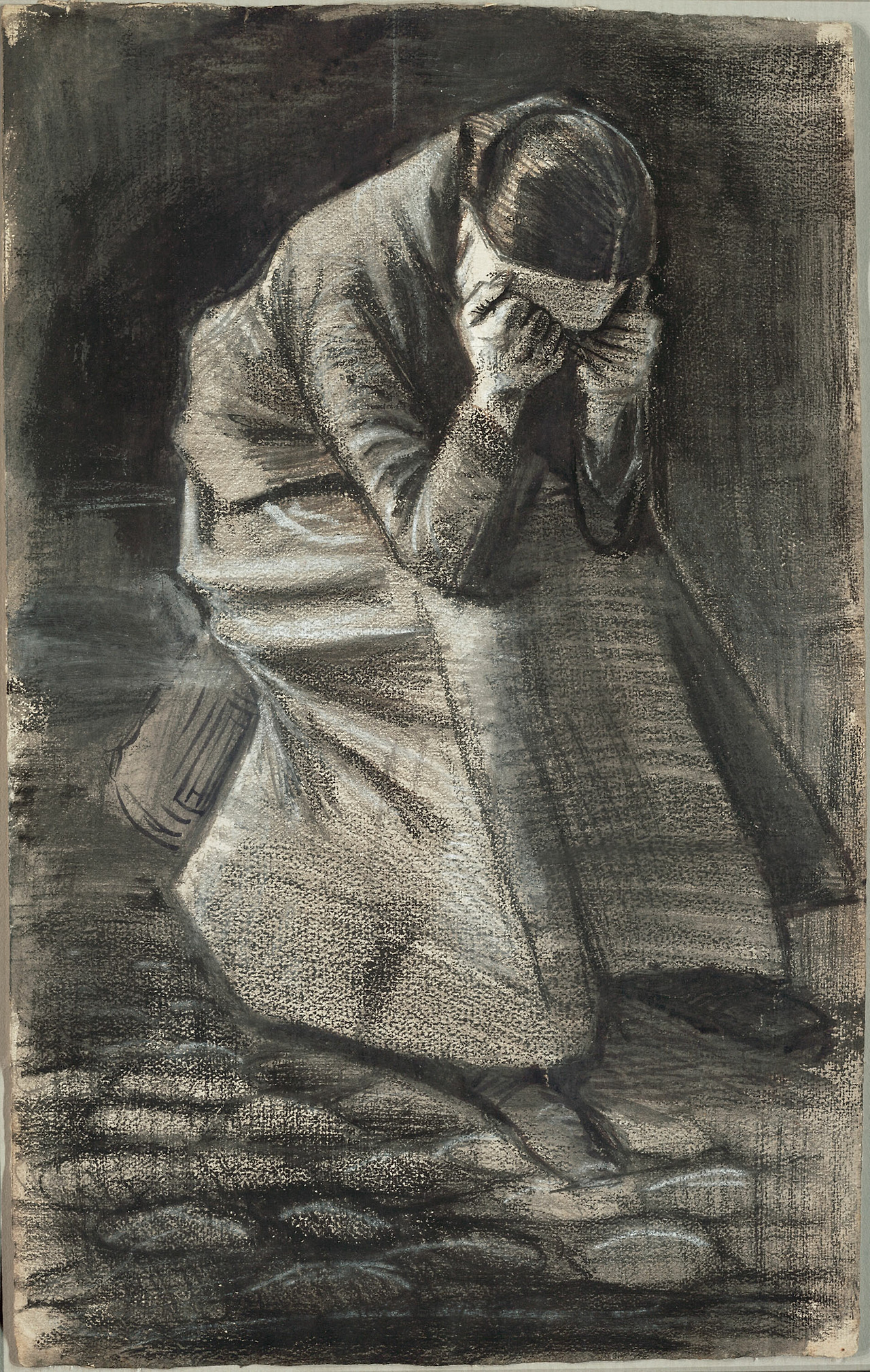 하루를 살아가기 어려운 상황일까 아니면 버림받은 노인의 모습일까. 가족을 잃은 슬픔일까. 작품만으로 바라보는 모습은 정말 슬프고 아련한 느낌이다. 고흐는 이런 작품을 여러 점 그렸다고 하는데 얼굴을 파묻은 꽉 쥔 주먹에서 그 감정의 최고에 달해 있음을 알 수 있게 해 주었다. 그는 왜 남녀를 불문하고 주먹 쥔 손으로 얼굴을 가린 작품을 그렸을까.