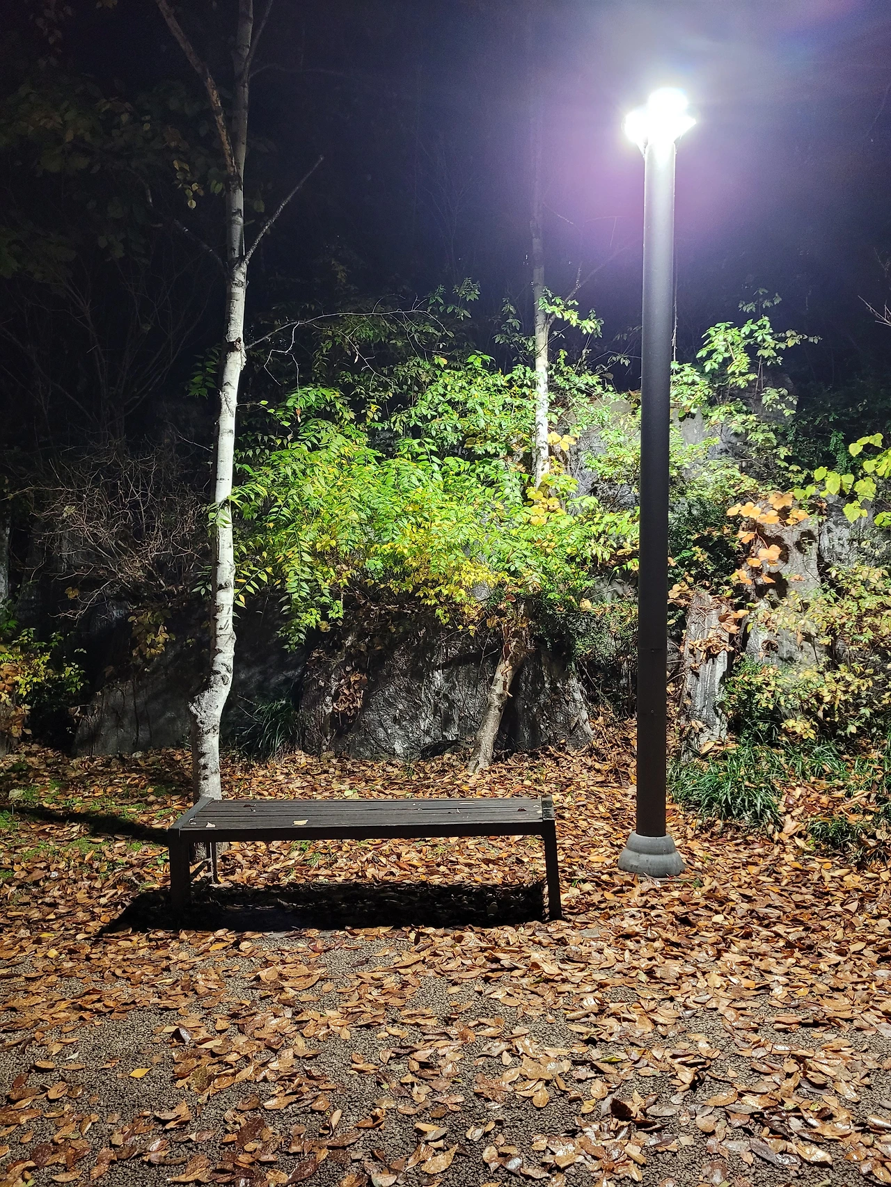 가로등 불빛이 있어 깊어가는 밤에 가을을 느낀다.