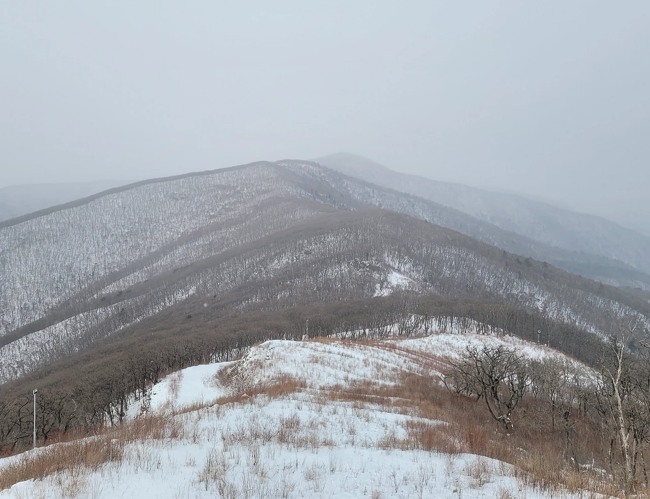 설날 가리왕산 케이블카를 타고 산 정상에 올랐다. 1.7킬로미터의 거리를 20여 분에 오른다. 눈이 쌓인 풍경은 겨울 정취를 그대로 전해왔다. 예전에 등산을 하면서 상봉에서 중봉을 거쳐 이곳 숙암리 골짜기로 내려온 적이 있다. 그때도 겨울 산행을 했었는데 케이블카를 타고 오르니 더 감회가 깊다.