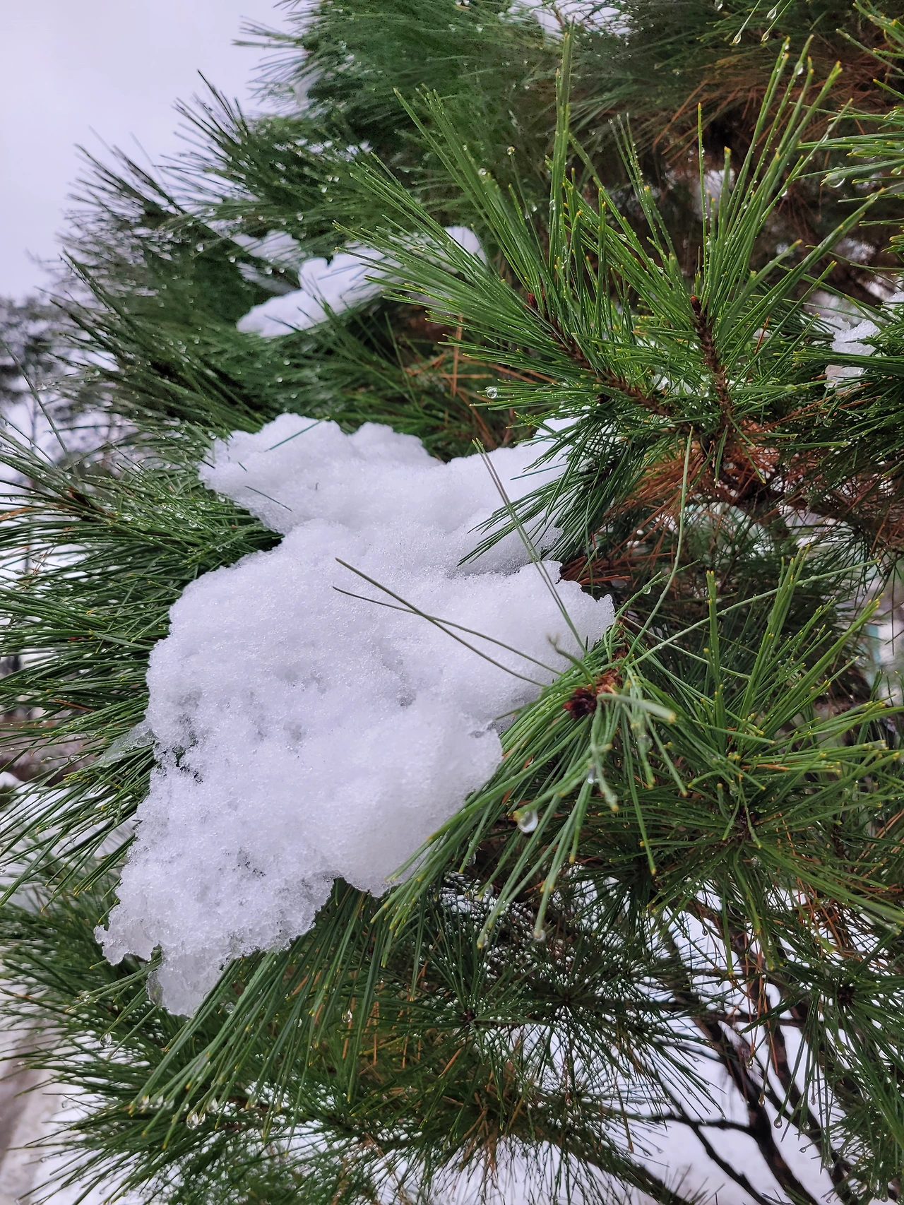 눈쌓인 소나무 가지가