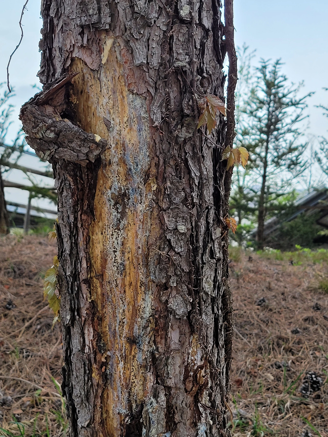부러지고, 떨어진 가지와 솔방울이 다시 나무의 거름이 되는 모습