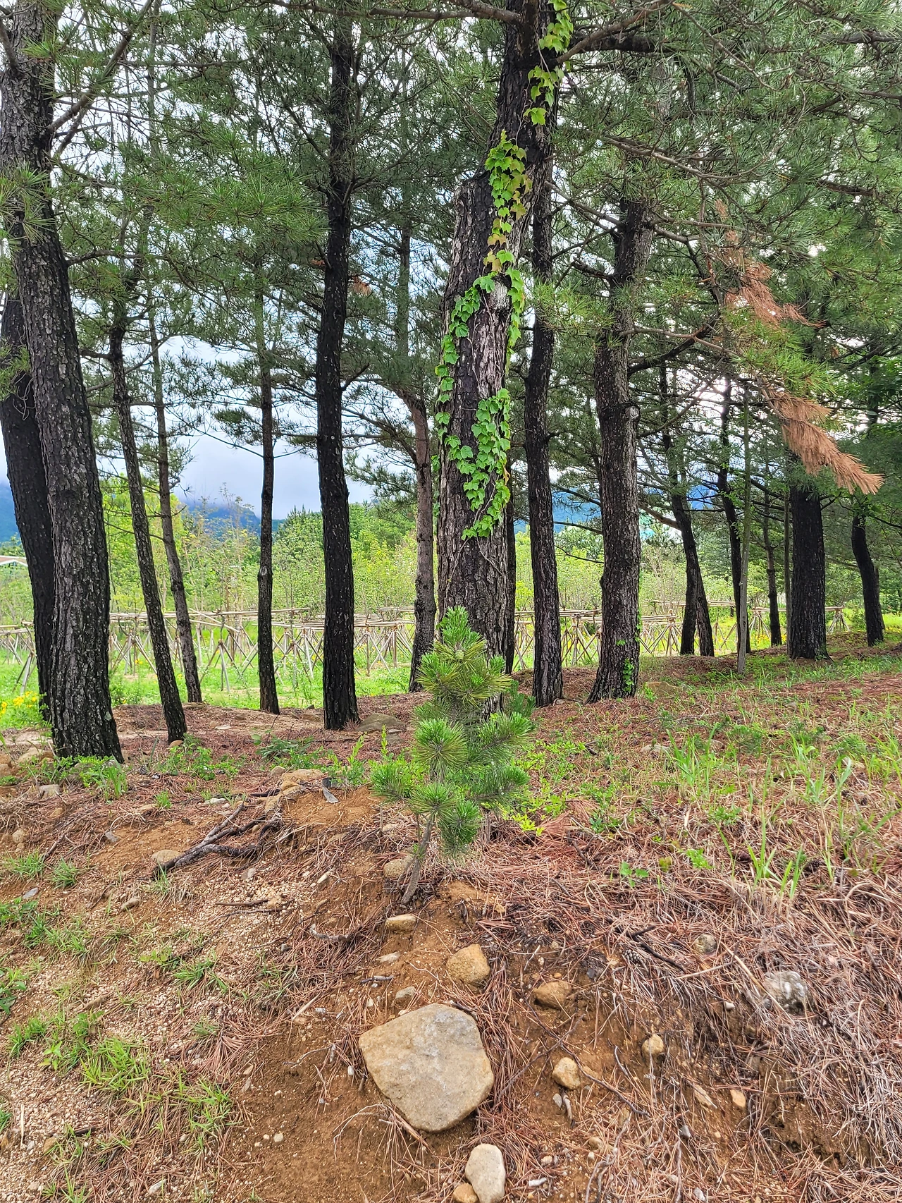 이런 생각도 하여본다. 사람도 저 나무처럼 강인한 정신력을 지닌다면 아무리 어려운 세상살이라도 감히 헤쳐 나갈 것이라고. 저 단단한 삶의 생명력에 누가 도전 할 수 있겠는가라고. 예전 산 정상에서 보았던 누워 자라는 나무들의 모습에서 강한 생명력을 느끼곤 했었는데 이런 산기슭에서도 느낄 수 있다는 것이 신기하다. 자연이 주는 풍요로움 그 속에서 벌어지는 암투 같은 처절한 몸부림은 보지 못했다. 그 속에 조금 들어오니 멀리서 보던 아름다움 속에 있는 진실들도 보이는 것이다. 보이되 보이지 않는 것이기에 그랬을 것이다. 오늘 아침 작은 소나무가 보여준 생명을 지키는 방법은 실로 새로운 세상을 본 느낌이다. 지금 우리가 준비하는 행사가 결국 아무것도 없는 백지에 그림을 그려가며 만들어 내듯이 용기 내어 가는 가는 의지의 힘처럼 말이다.