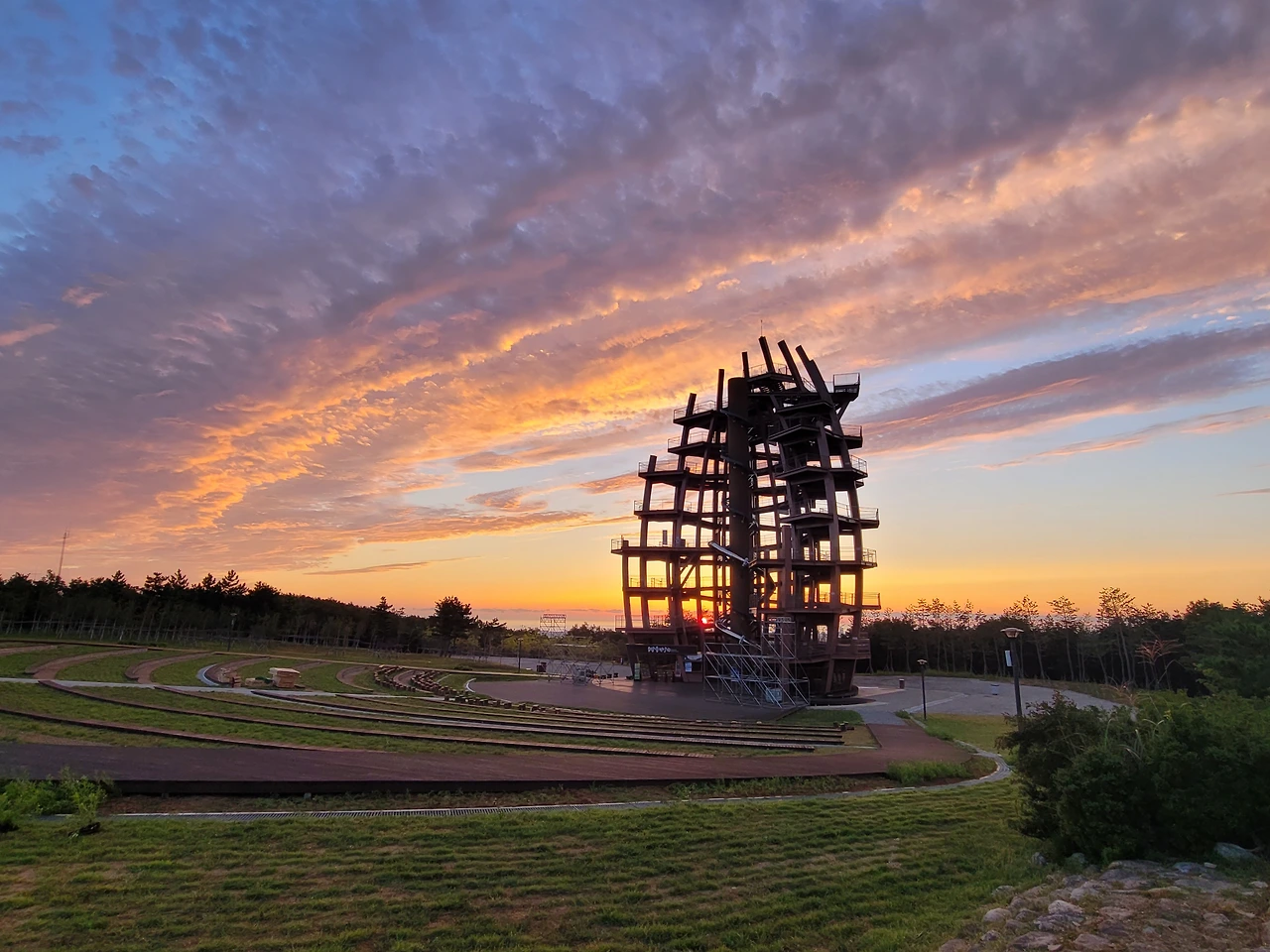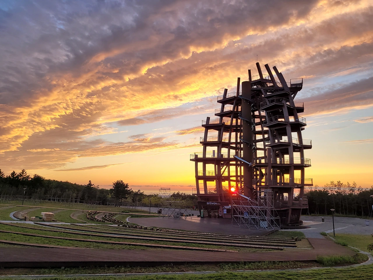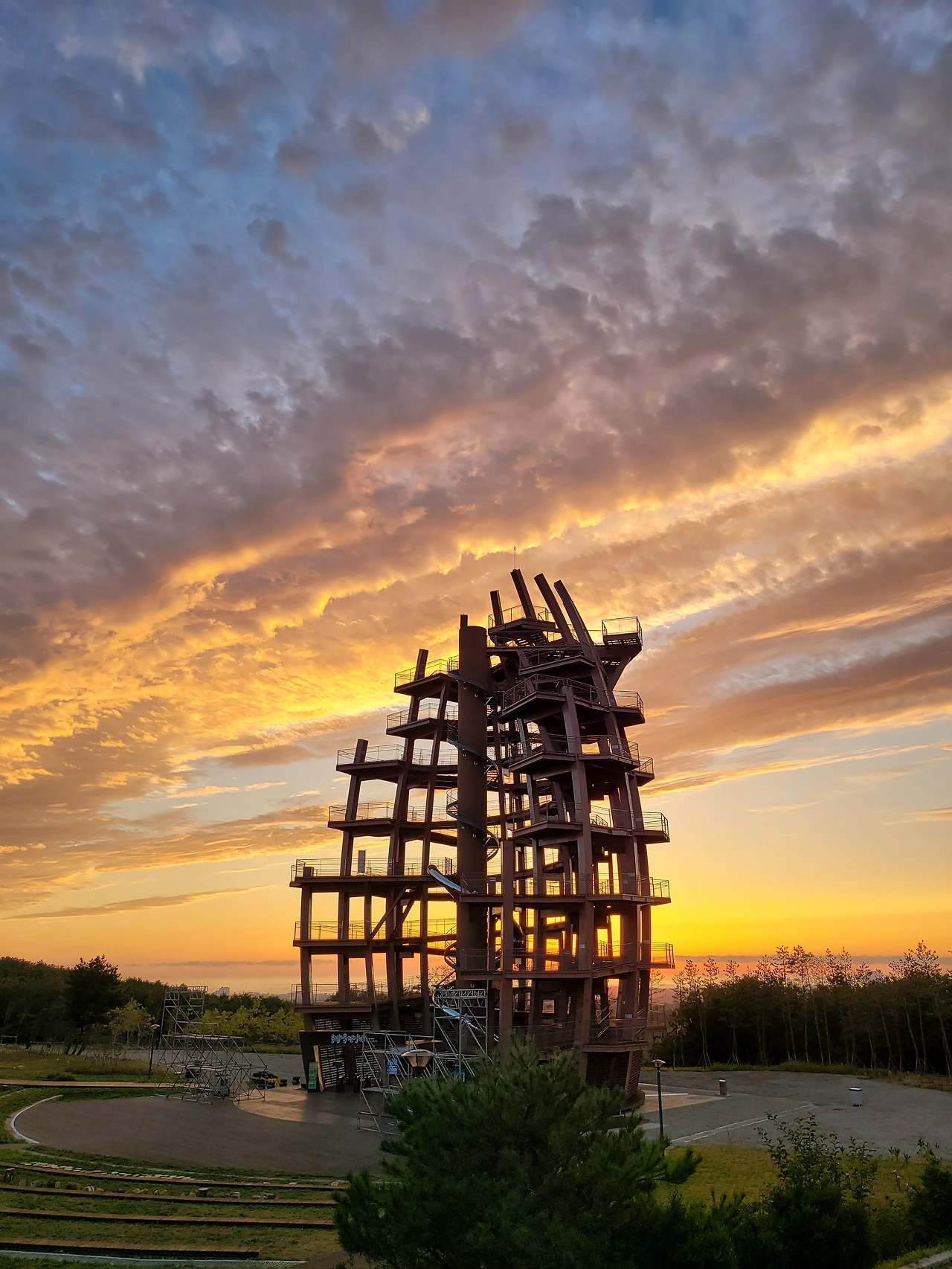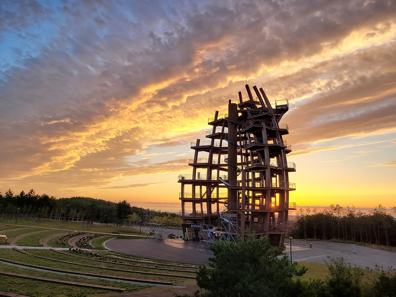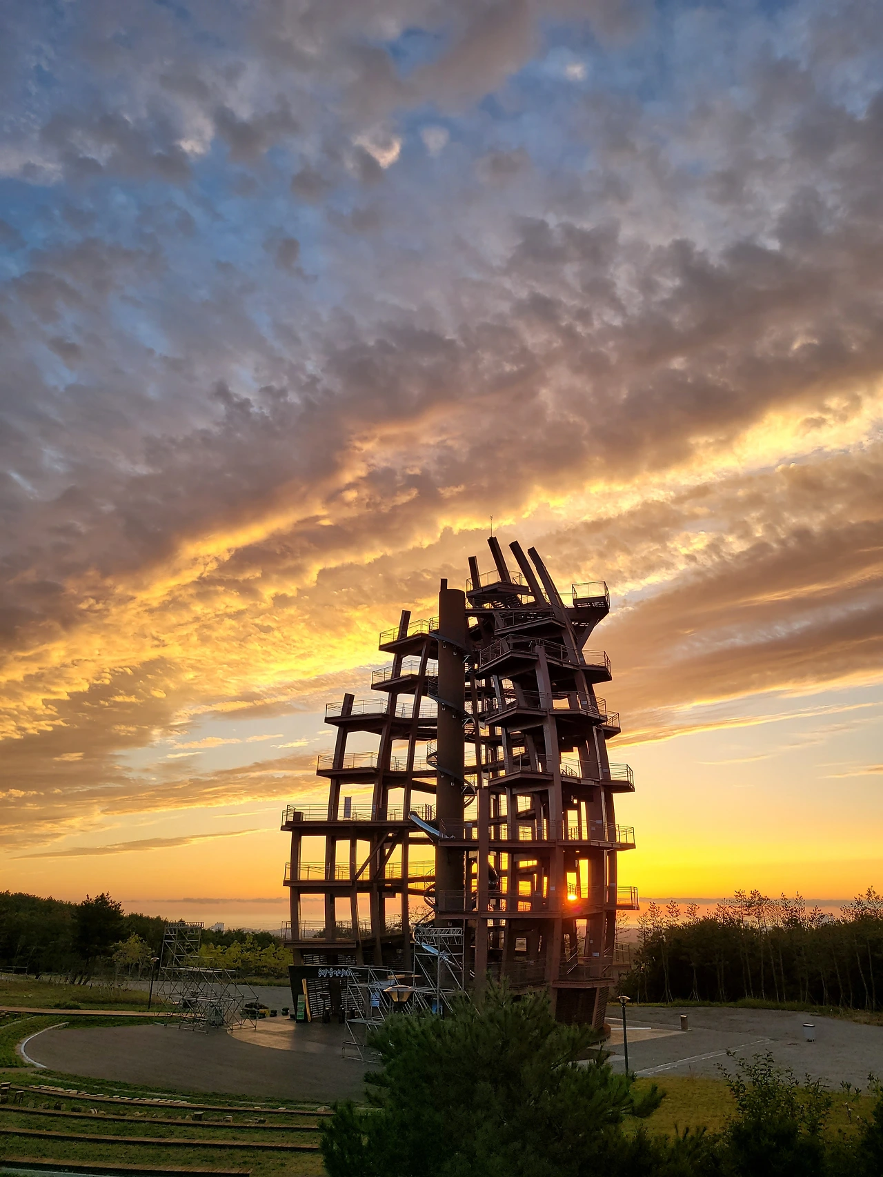 며칠남지 않은 행사 준비를 위해 전망대 앞에 구조물이 들어서고 있다.