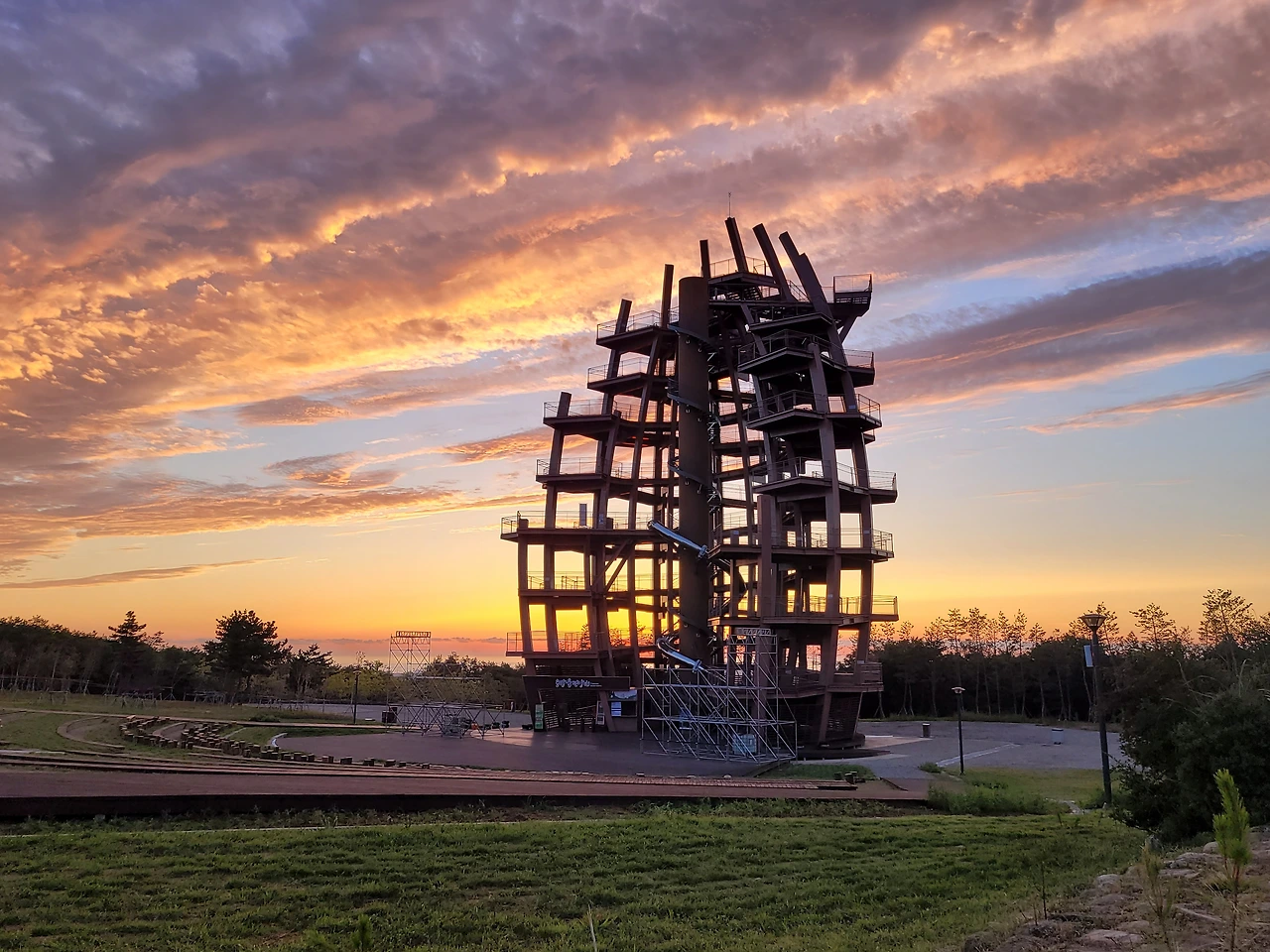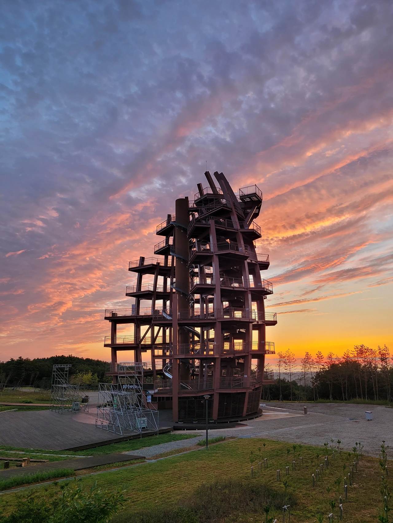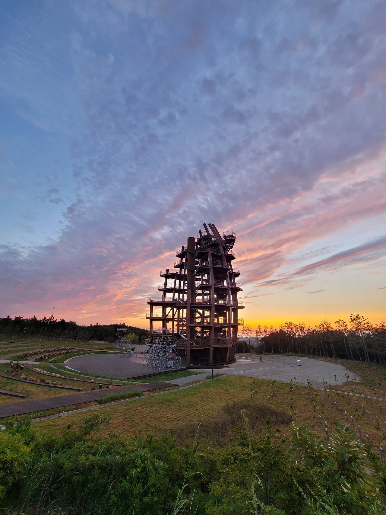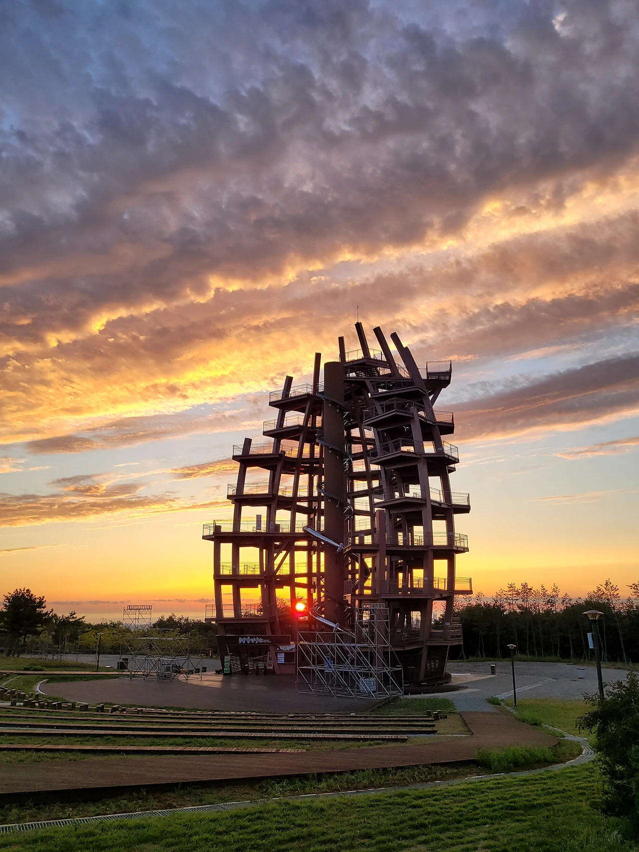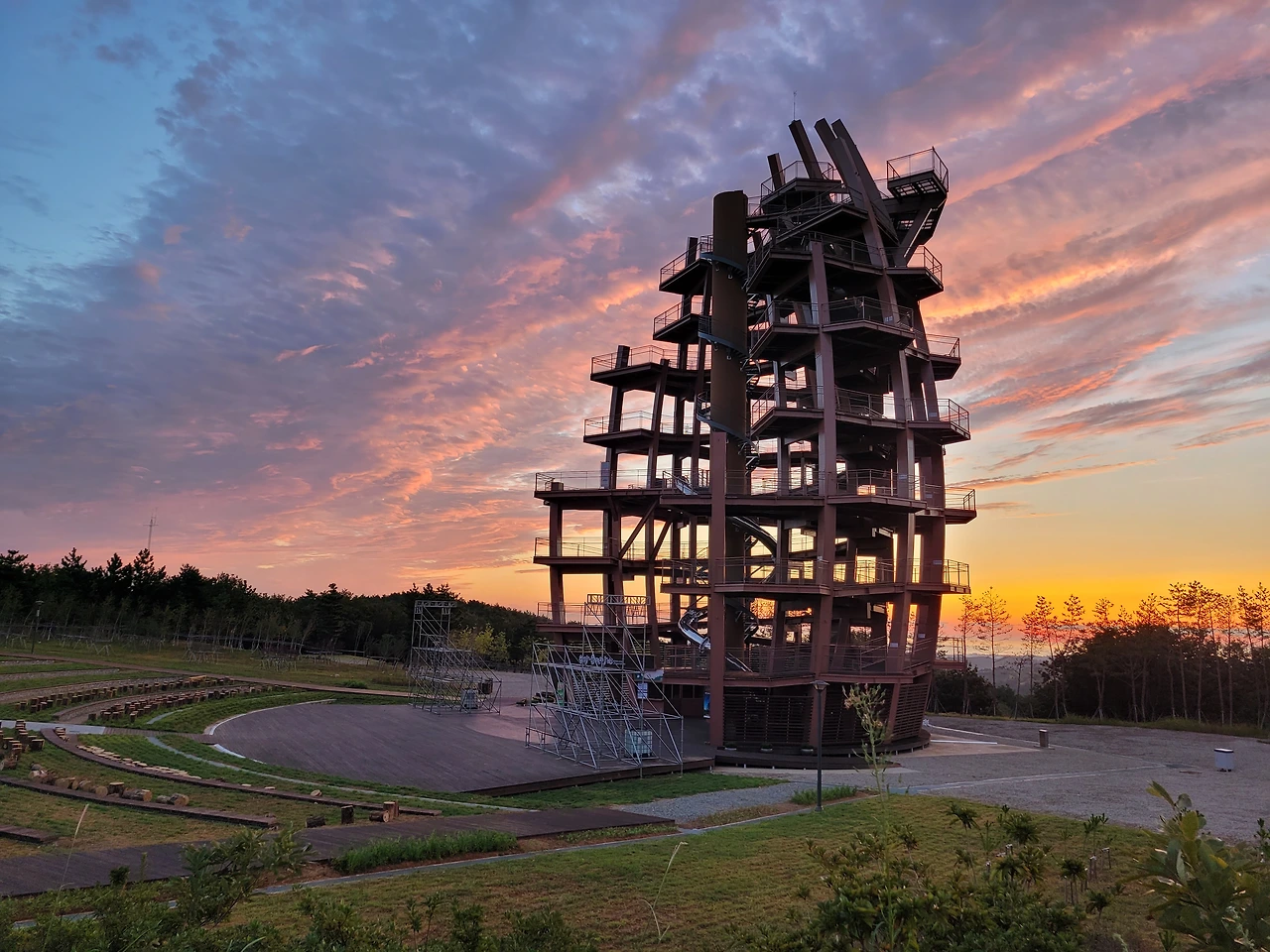 며칠남지 않은 행사 준비를 위해 전망대 앞에 구조물이 들어서고 있다.