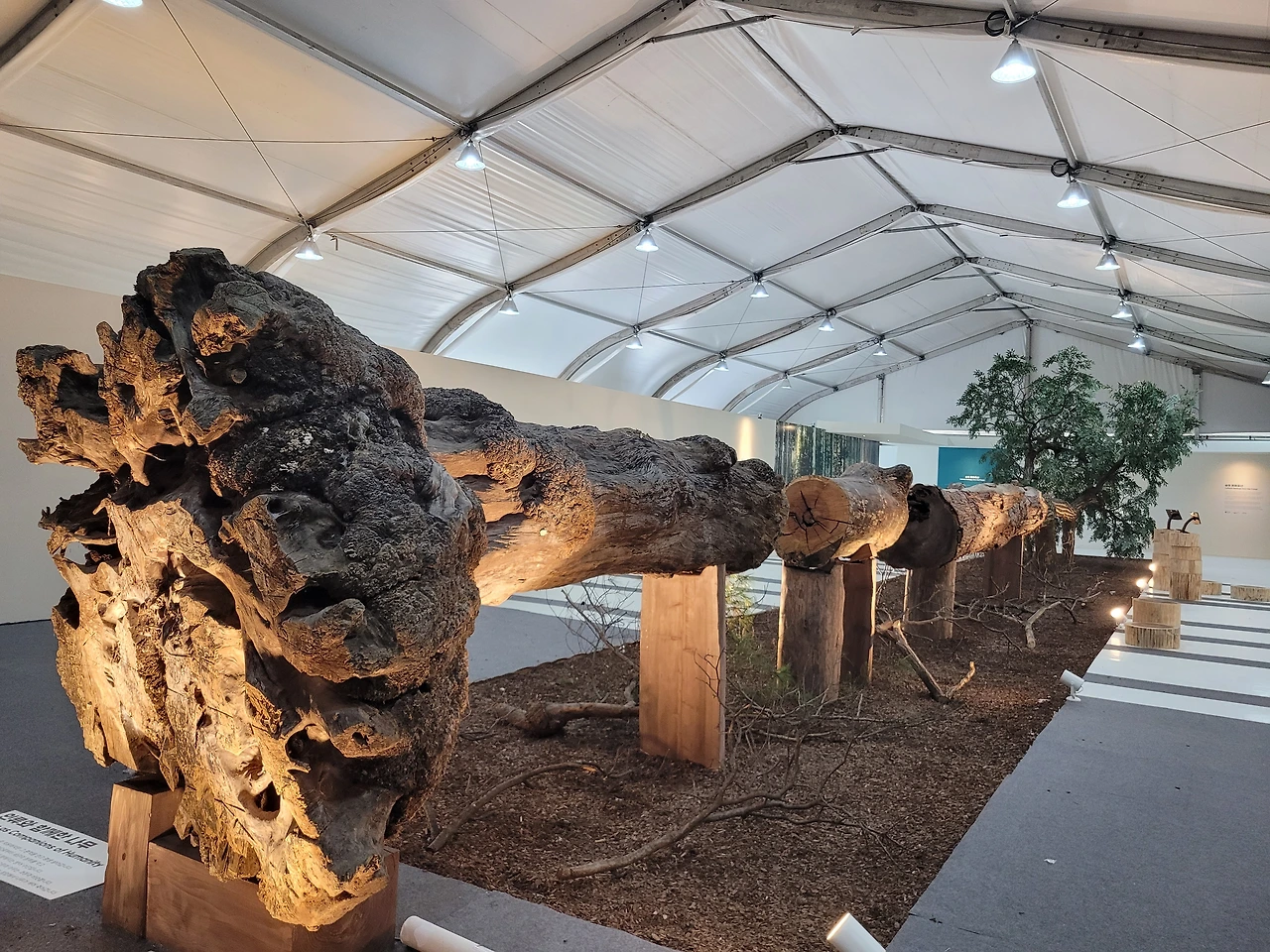 특히, 옆으로 뉘어놓은 25미터 길이의 나무는 웅장하다.