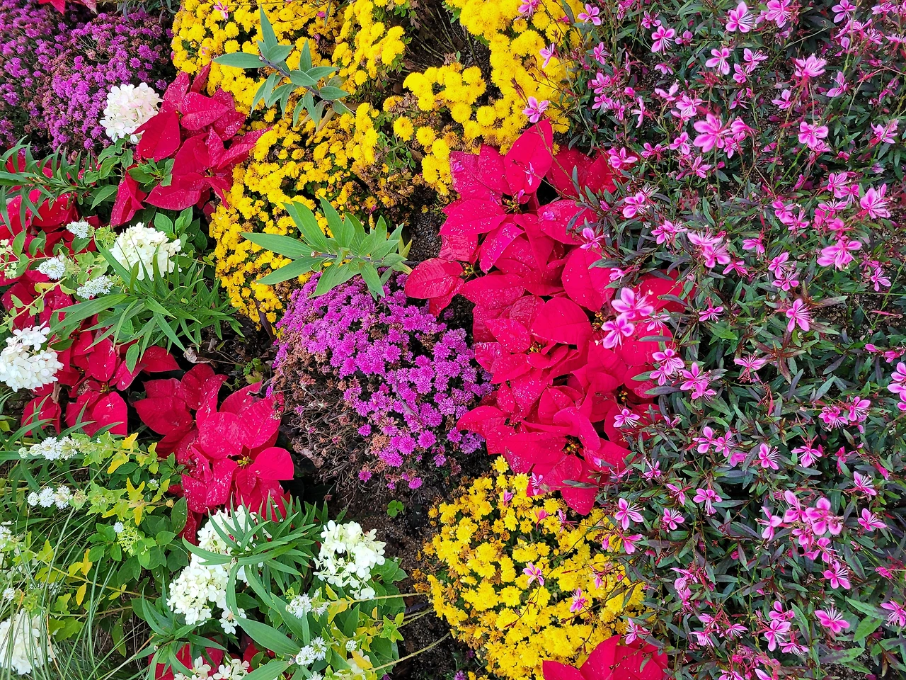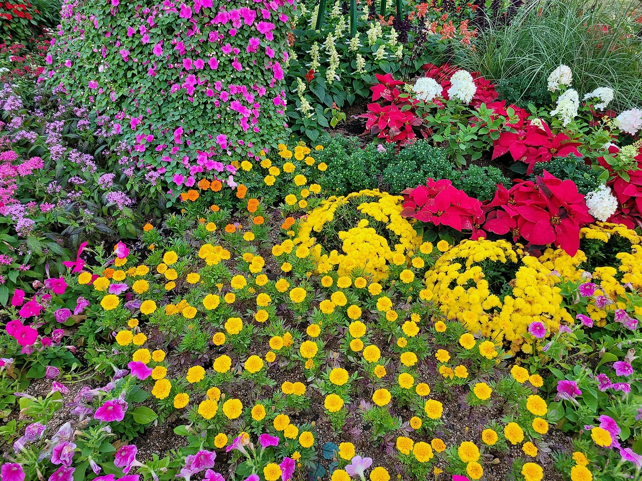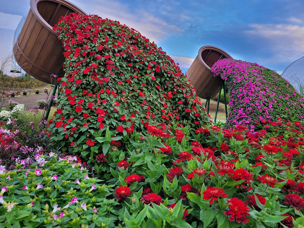 정원의 꽃은 빛을 발하듯 활짝 피어난다.