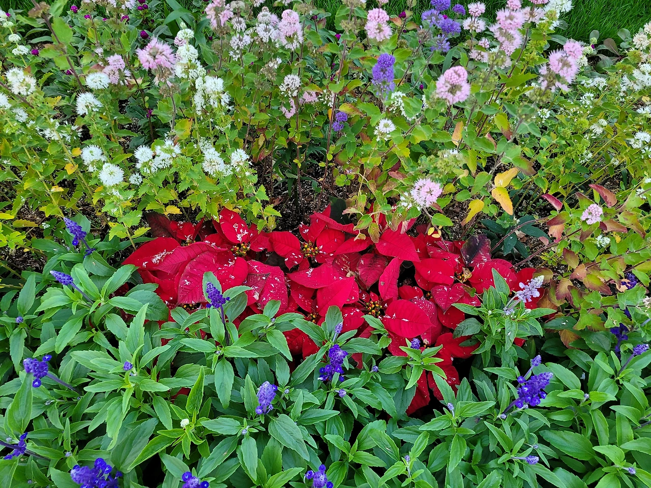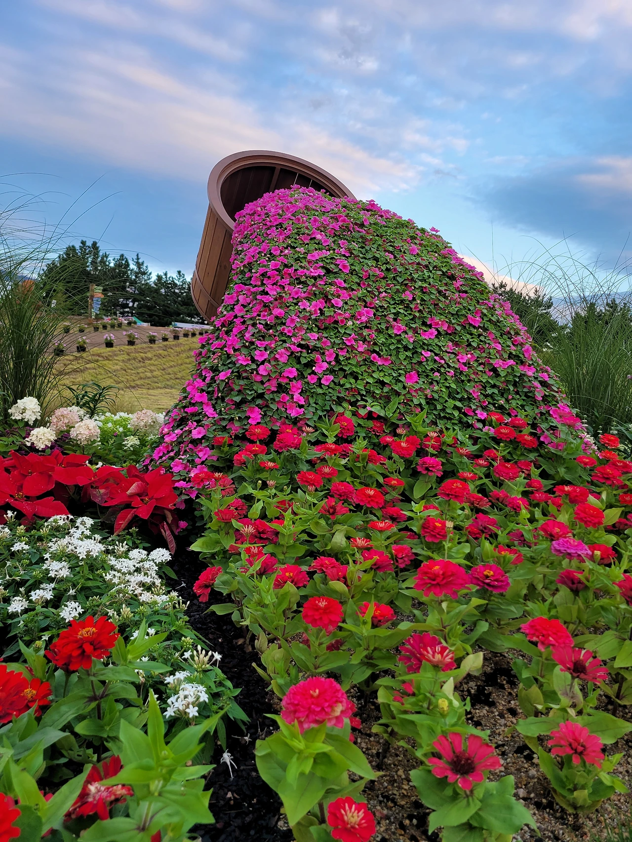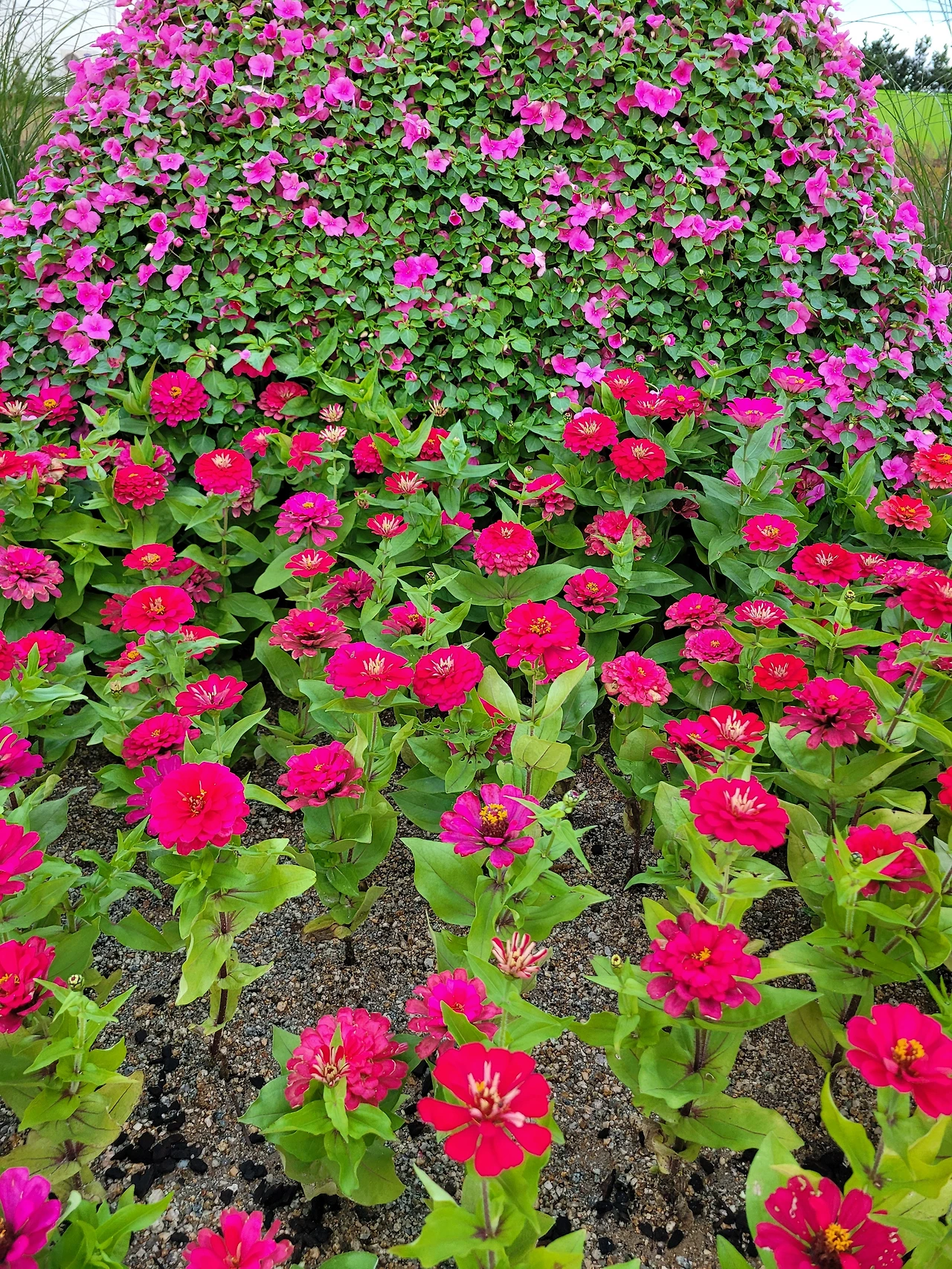 정원의 꽃은 빛을 발하듯 활짝 피어난다.