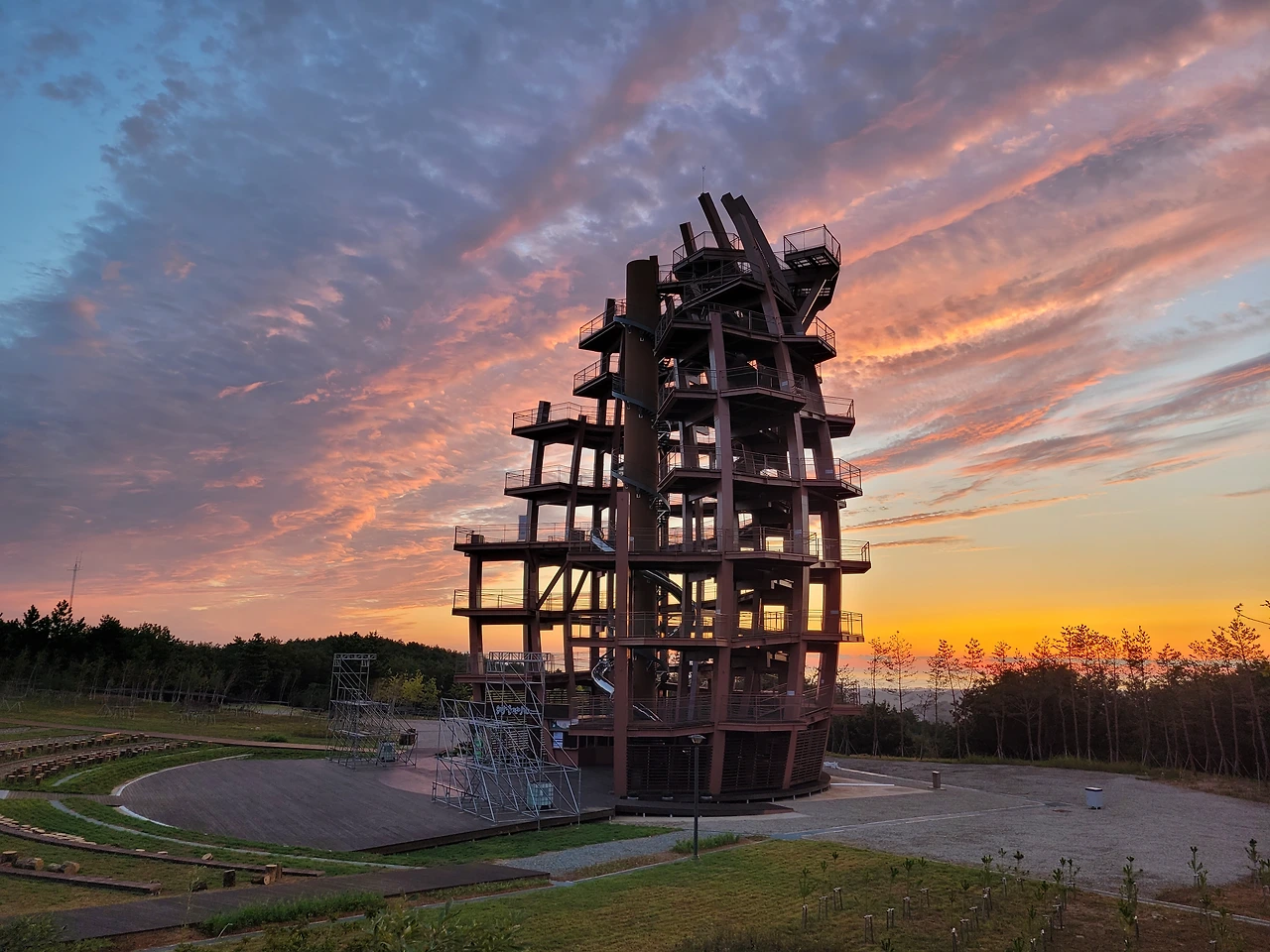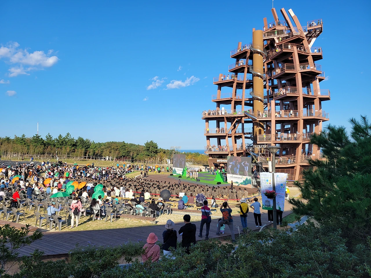 전망대 앞쪽은 무대가 조성되어 있다. 상시 900여 명의 관중이 공연을 관람할 수 있고 추가 보조 의자를 설치하면 2천 명 이상 가능한 공간이다.