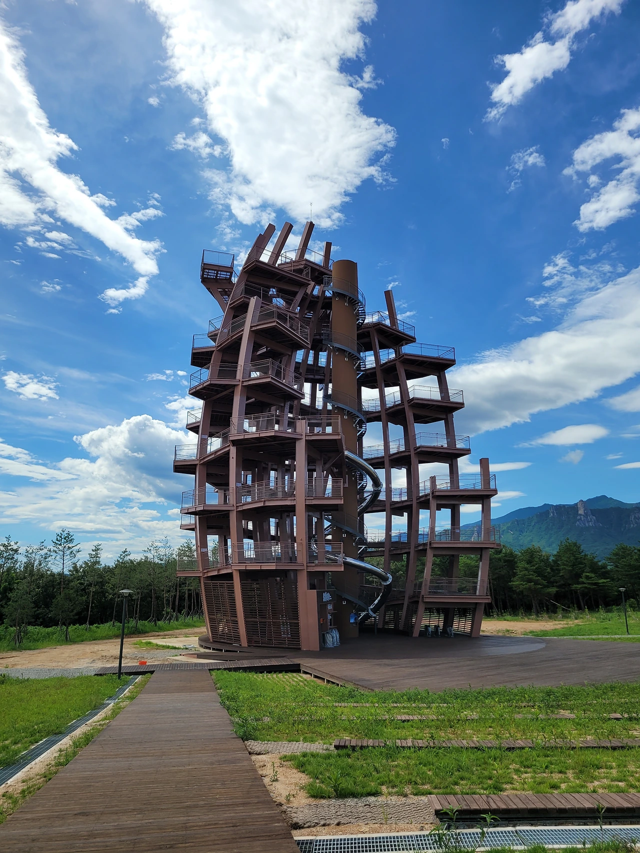 45미터 높이에 왕복 1.2킬로의 데크로 정상까지 연결되어 있다.
