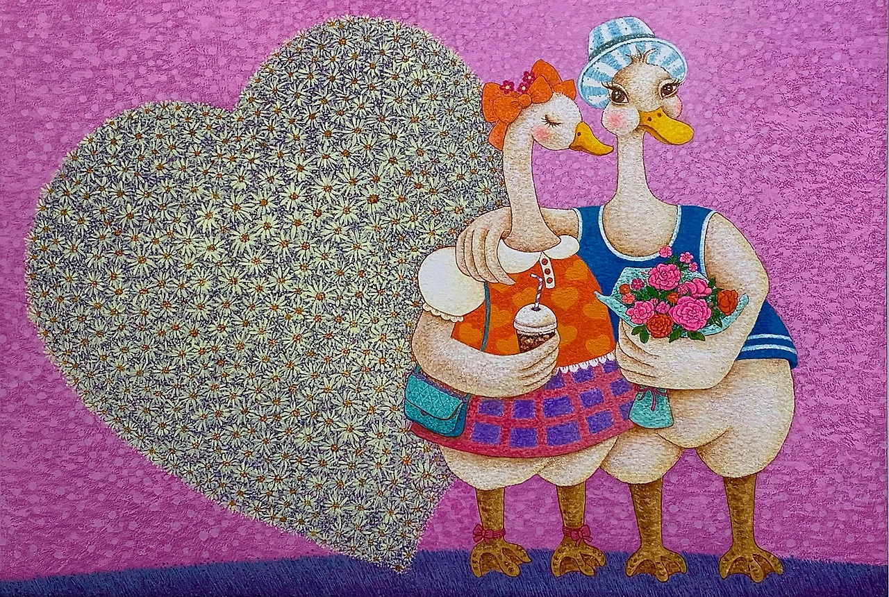 그렇기 때문에 작가의 작품을 보는 순간 누구나 사랑에 빠져들고 추억에 빠져들 수밖에 없는 감정의 변화를 꺾는다. 그의 작품이 지닌 힘이다. 그동안 마음속 고향의 모습과 추억 속 정겨운 집 풍경을 통해 보여주었던 감정의 선 線을 오리 부부를 통해 세상 밖으로 완전히 도출 導出시켰다. 작가의 마음속에 남아있는 그리움과 사랑이라는 것이 이제는 완전히 자리를 잡았기 때문이 아닐까. 이것은 시간의 비례에서도 찾을 수 있을 것이다. 감정이 여물어 가고 작가로서의 길이 깊고 넓어져 가면서 깨달은 삶의 깊이다.