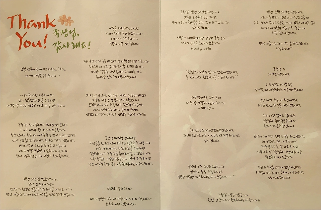 게시판 인사글에 달린 댓글을 편집해서 선물로 받았다.