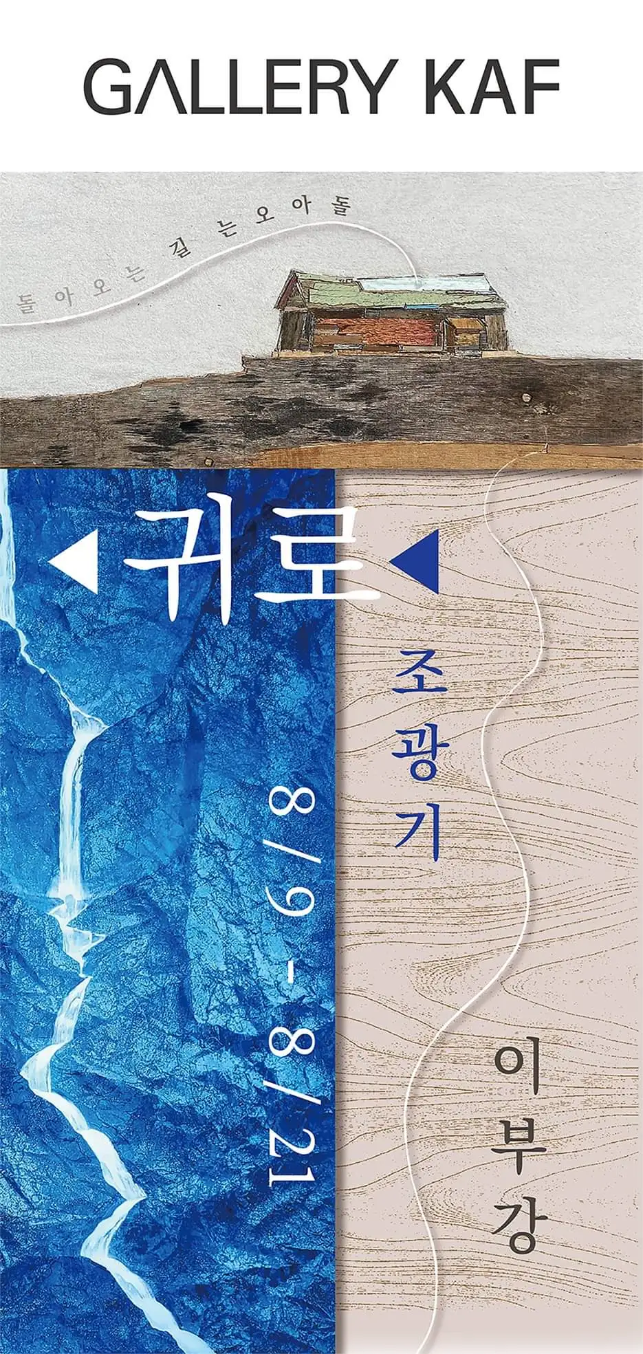 폭염이 계속되고 있다. 34도, 자동차 에어컨을 2단 이상으로 틀어야 시원하게 느껴질 정도로 무덥다. 그런 무더위 속에 폭포를 보러 갤러리를 찾았다. 조광기 이부강 작가 2인전이 열리는 한국미술재단 아트버스카프다. 날이 더워서인지 갤러리는 조용했다. 전시장을 가득 채운 벽면에 청색과 하얀색이 어울려 만들어내는 폭포가 시원하게 펼쳐졌다. 보기만 해도 더위를 식혀주는 시원함이다.