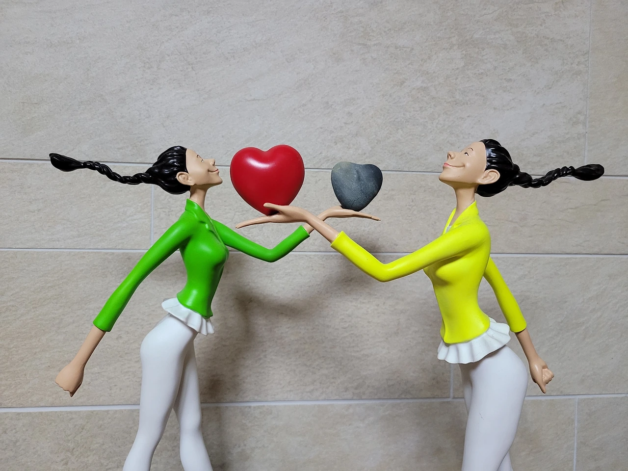 서로의 마음을 드러내는데 한쪽의 색이 다르다.