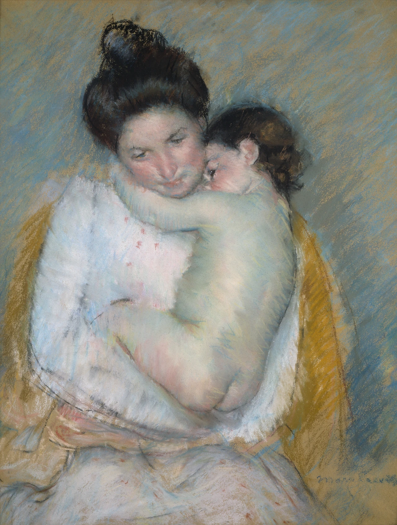 메리 카사트 Mary Cassatt(American, 1844~1926)는 인상주의를 대표하는 여성 중 한 명이다. 부유한 가정에서 태어나 어려서부터 당시 여성으로서는 쉽지 않은 많은 지역을 여행하고 다양한 경험을 했다. 그의 작품은 따뜻하고 부드러운 풍으로 작품에 여성과 아이의 모습이 많이 담겨 있다. 특히 작품 속 인물은 서민이라기보다는 귀족처럼 부유한 모습이다. 인물은 평화롭고 사랑스러우며 따뜻하다. 아이를 안고 있는 여성과 아이가 고양이나 강아지를 안고 있는 모습은 평화로움의 상징처럼 보인다. 아이는 안락해 보이고 엄마는 미소로 그 사랑스러움을 표현하고 있다.