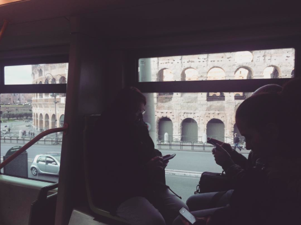 콜로세움이 옆에 있어도 휴대폰에 집중하는 사람들.