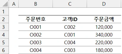 결과: 주문번호 O001 → 고객 ID C002 → 이름 "김철수"