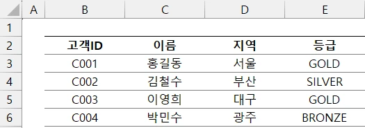 =VLOOKUP([@고객 ID], 고객정보!B:E, 2, FALSE)