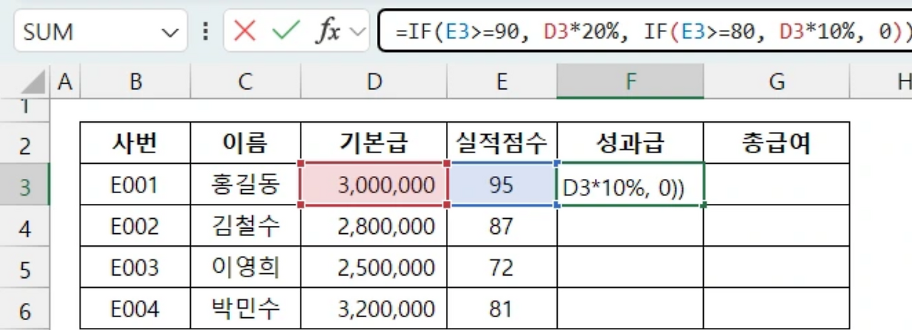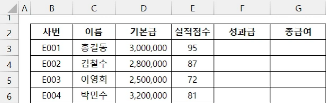 그래서 오늘은, 엑셀의 IF 함수를 이용해 급여·성과급을 자동 계산하는 방법을 함께 배워보겠습니다.