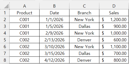 =SUMPRODUCT((지점="New York")*(제품="C001")*매출)