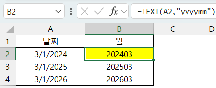 TEXT(날짜범위, "yyyymm"),