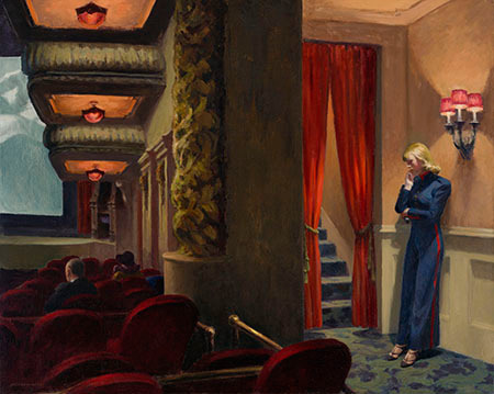 20세기 초 뉴욕은 상상 이상으로 활기차고 분주한 도시였을 거예요. 그런 곳에서 호퍼의 마음이 향한 하나의 컷은 어둔 배경 속에 골똘히 서 있는 어느 여자이고 남자였죠. 그는 그들을 섬세하게 화폭에 담았습니다. 만일 호퍼가 예민한 감각을 지닌 사람이 아니었다면 뉴욕 어느 거리의 쓸쓸한 밤 풍경도, 조용한 호텔방의 말 없는 커플의 모습도, 영화관 벽에 기대어 입술을 깨물고 있는 여인의 모습도 우리는 볼 수 없었겠지요. 누군가 붙잡지 않았다면 금세 날아가버렸을 그 일상적인 장면들은 세련되면서도 따뜻함을 잃지 않는 호퍼만의 붓질로 되살아나 우리 앞에 살아 숨 쉬고 있으니까요.