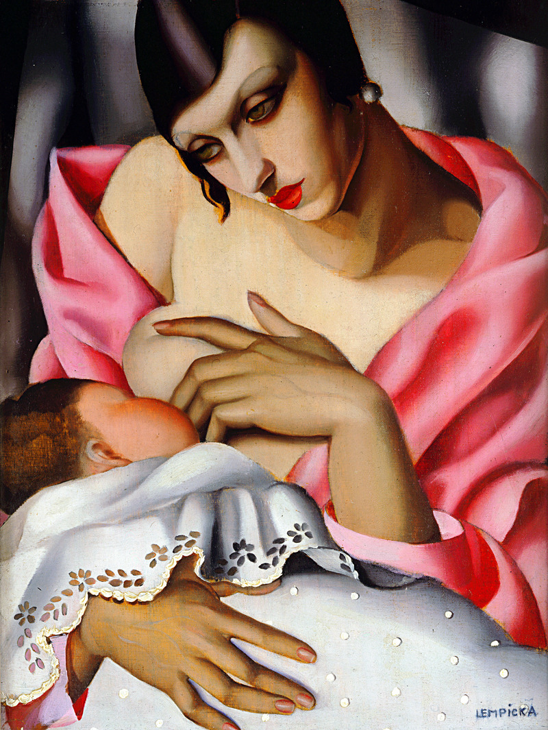 엄마의 젖으로 고개를 돌린 아기의 통통한 두 볼. 엄마는 그런 아기에게 능숙하게 젖을 먹이고 있어요. 잘 관리된 손톱과 완벽한 메이크업, 당시 유행을 따른 헤어스타일. 이런 그녀의 모습은 우리가 아기를 돌보는 엄마의 이미지로 떠올리는 통념적인 이미지와는 조금 다른 듯합니다. 그래서 더욱 눈길이 가네요. 렘피카를 대표하는 여러 작품들 중 독특하게도 '엄마'로써의 여자가 등장하는 이 작품의 제목은 <모성>입니다. 사회적 성공과 독립적인 생활 못지않게 엄마라는 역할은 렘피카에게 중요했던 것 같아요.
