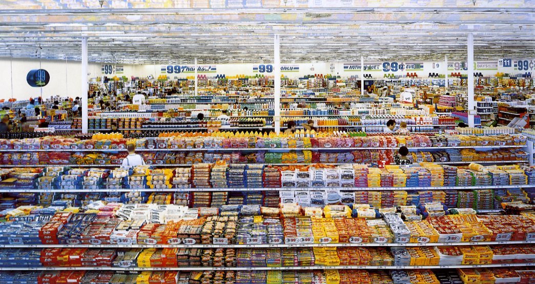 구르스키가 의도적으로 사진에 부여한 비정상적인 선명함은 일상적이고 소소한 오브제들에도 주목할 만한 가치가 있음을 넌지시 알려주는 듯하다. 압도적인 아우라를 자랑하는 천냥 마트의 가장 구석진 자리에 있는 과자 이름을 명확히 읽을 수 있다는 것은 독특한 체험임에 틀림없다.