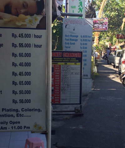 발리에 사는 한국 식당 사장님도 나중에 만난 다이빙 강사도 다들 똑같이 당한 경험이 있다고 했다. 그들은 그곳에서 생활하는데도 큰돈을 바꿔야 하니까 환율의 유혹에 빠질 수밖에 없었다고 했다. 그 후에는 은행만 이용한다고 했다.