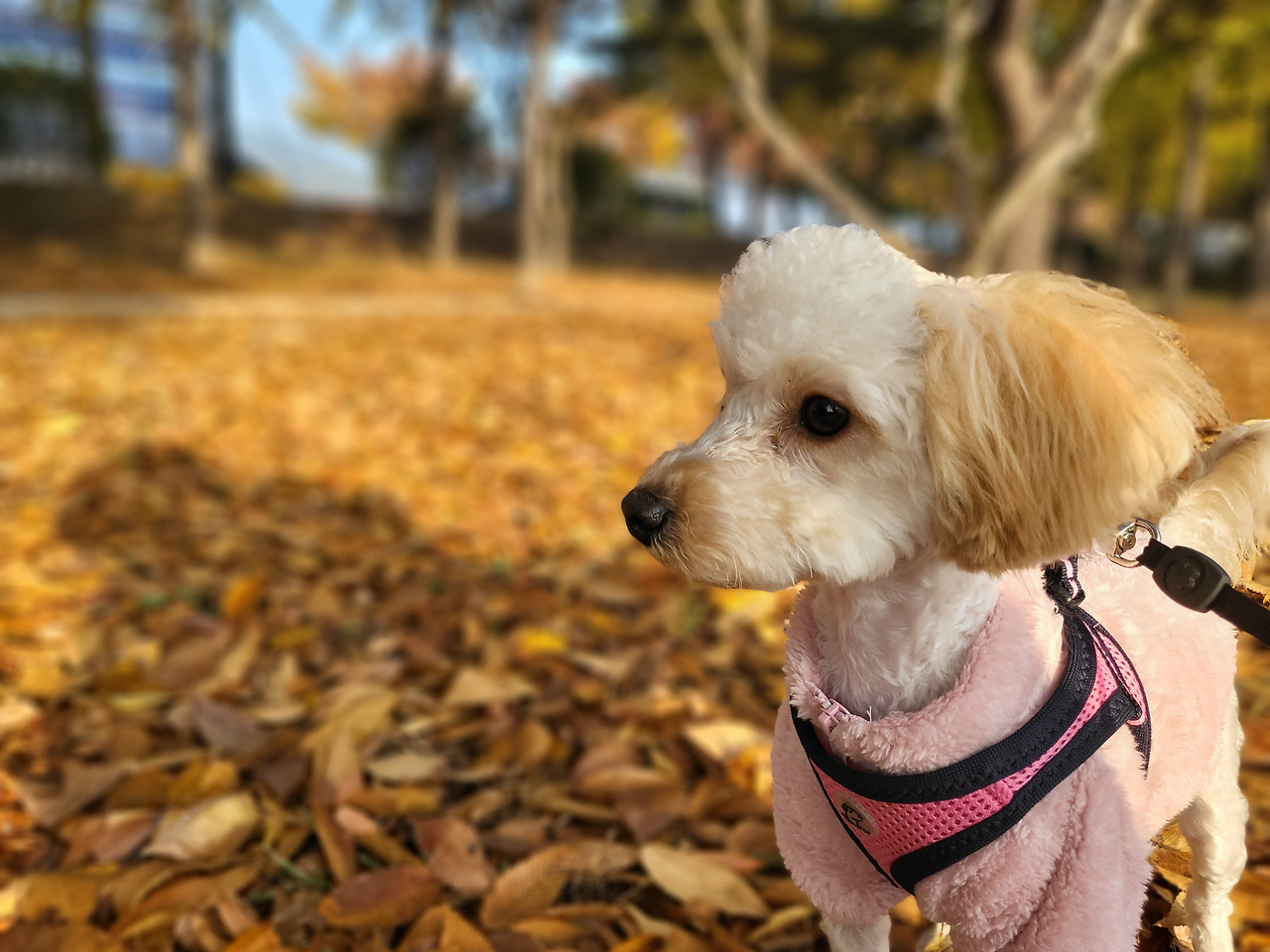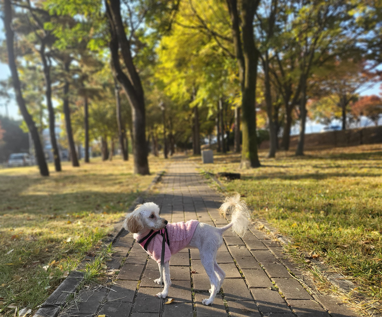 굳이 내가 지금은 할아버지가 된 리처드 기어까지 소환하면서 센트럴 파크의 가을을 끄집어낸 이유는 이렇게 전혀 자발적이지 않은 아침 루틴에 낭만 한 스푼을 더하기 위해서라면 너무 유치할까? 반 강제적이니 아침마다 나는 고민에 쌓인다. 날도 추운데 오늘은 건너뛸까? 오늘은 오래 혼자 둘게 아닌데 집에서만 좀 놀아만 주고 말까? 그런데 어김없이 산책을 빼먹은 날엔 코코가 뭔가 스트레스받는 것 같다는 느낌이 더 드는 건 내가 예민한 탓인가? 참 뭉그적 뭉그적 게으름이 끝이 없다. 그런데 막상 부스스 일어나서 공원에 가면 난 그대로 뉴욕의 센트럴 파크 앞에 있는 느낌이다. 어디 집 앞의 코딱지만 한 공원을 센트럴 파크에 비유할까? 그런데 그냥 그 쌀쌀한 느낌이 싫지 않다. 센트럴파크 낙엽은 뭐 별 다르나? 다행인건 멀리까지 가지 않아도 되는 자연 그대로의 공원이 집 앞에 있으니, 이건 또 얼마나 행운인가! 날리는 낙엽을 잡으러 뛰어다니고, 폭신폭신 쌓인 낙엽들 사이로 코를 킁킁거리며 마음껏 뒹굴 수 있는 코코는 얼마나 행운인가!! 조금 뭉그적거리는 게으름을 떨치기엔 꽤나 이상적인 루틴이다.