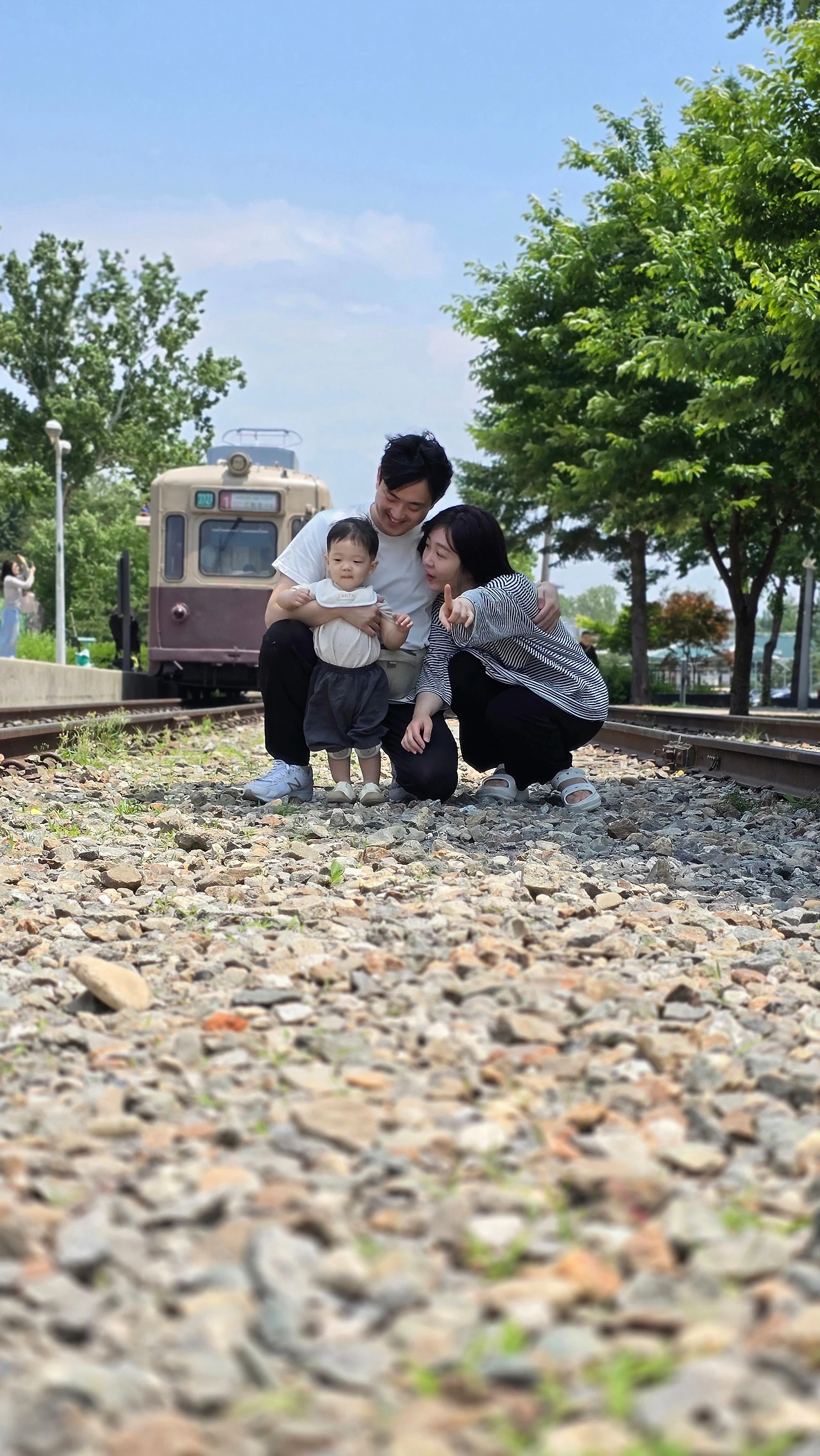"하민아, 이게 기차야 '칙칙폭폭' 책으로만 보다가 처음 봤지?"