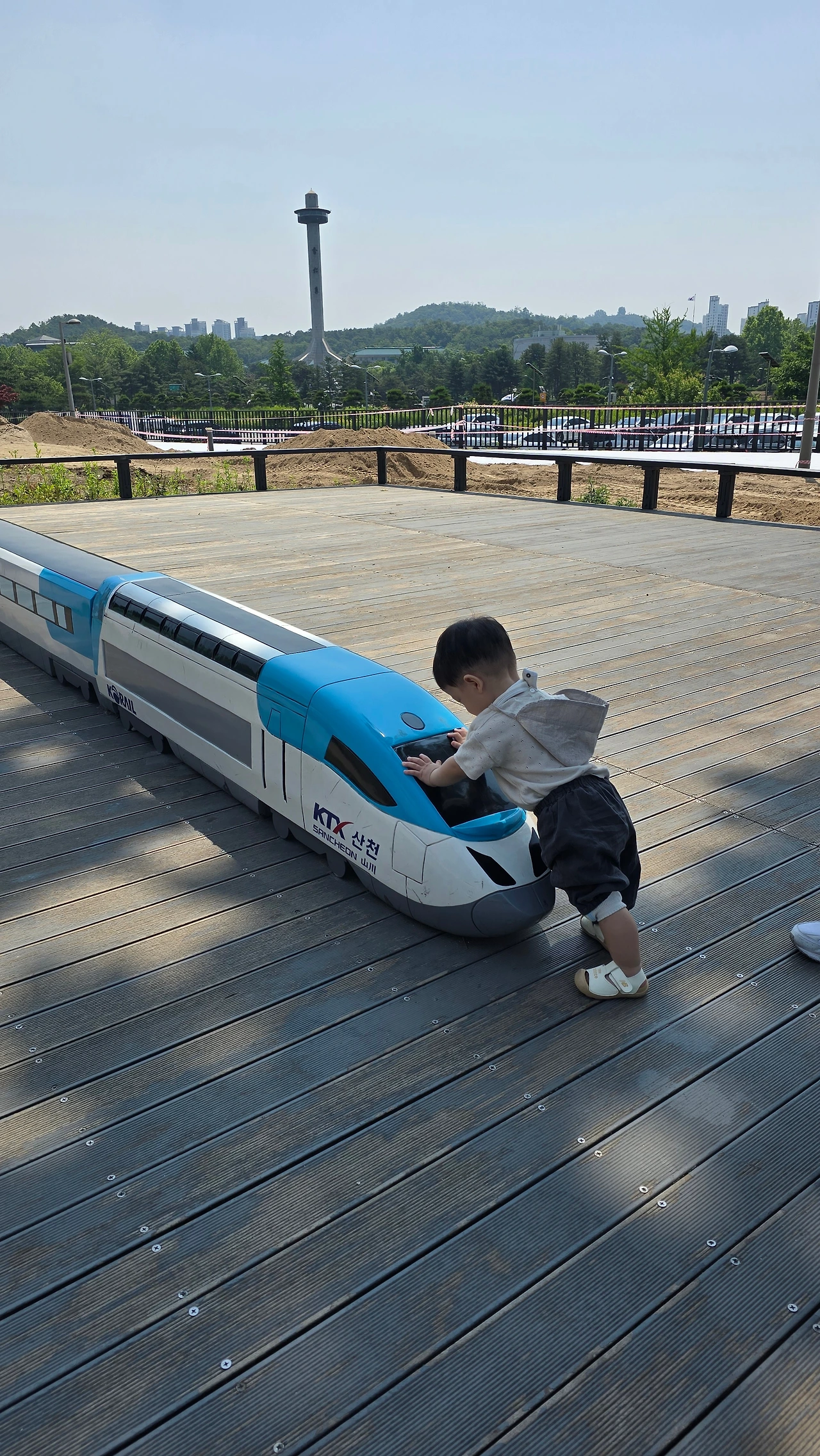 길쭉길쭉한 기차를 처음 본 하민이는 눈이 동그래졌다. 아빠 품에서 내려와서는 기다란 ktx 기차모형을 향해 힘껏 힘을 준다 '끄응! 끙!'