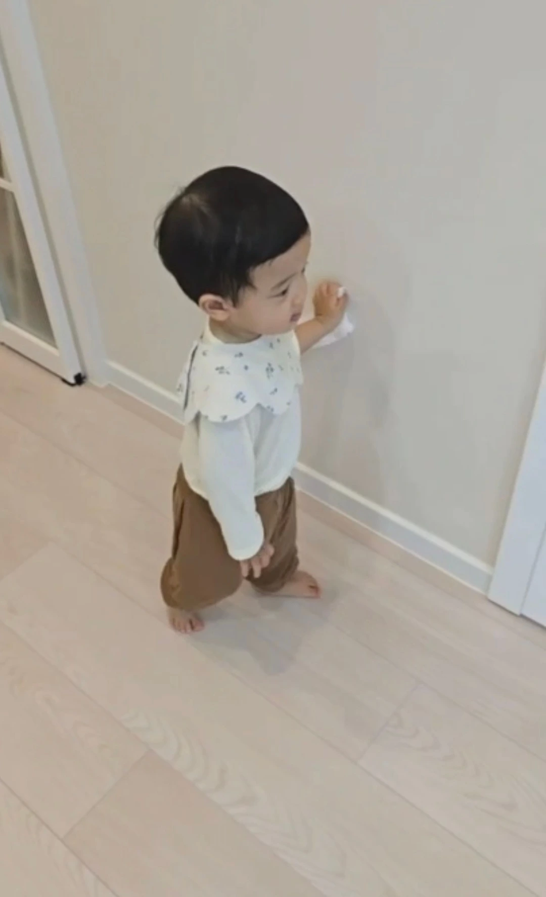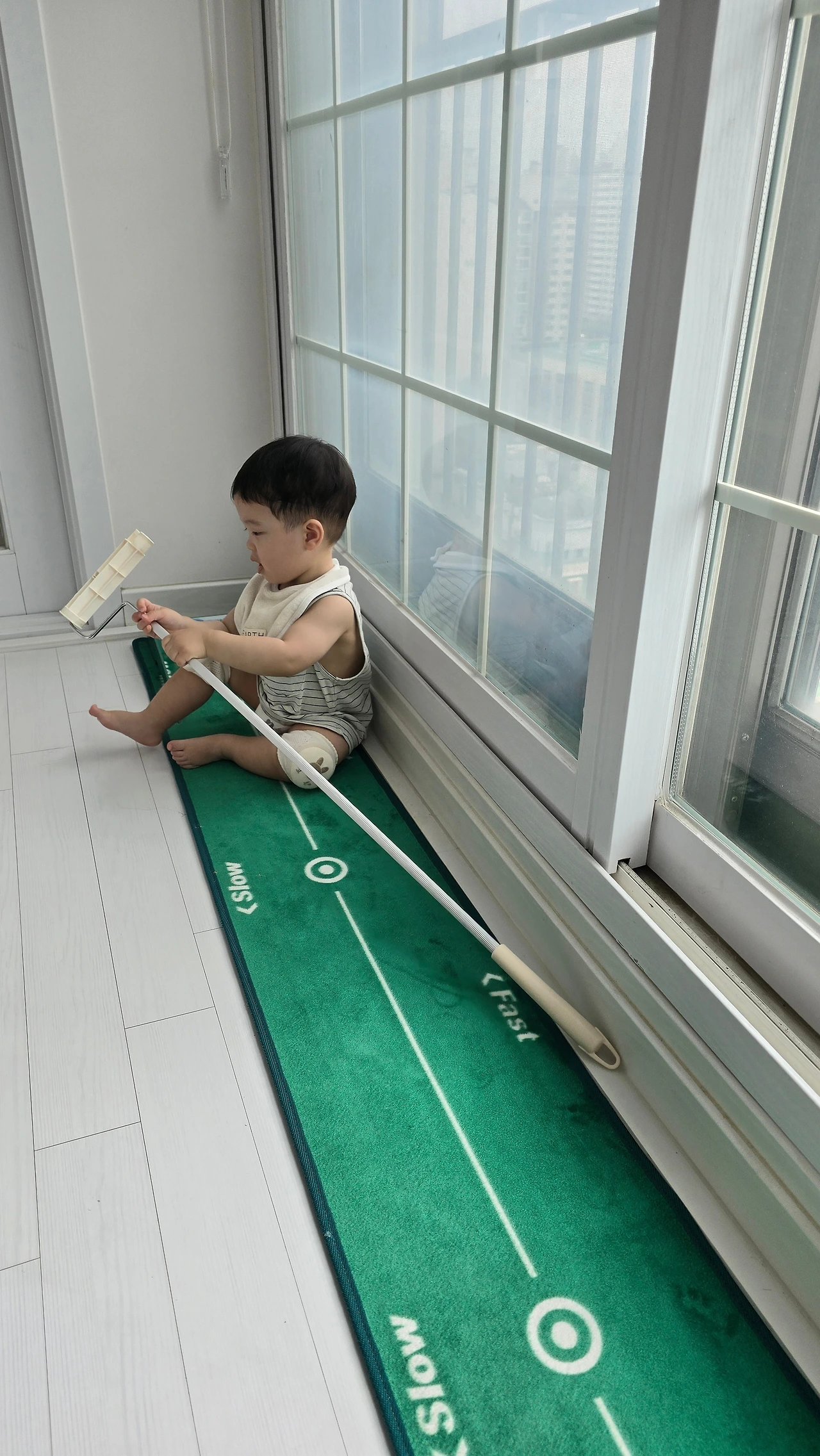 하민이가 나와 아내가 청소하는 모습을 유심히 지켜보더니 따라 하고 있다.