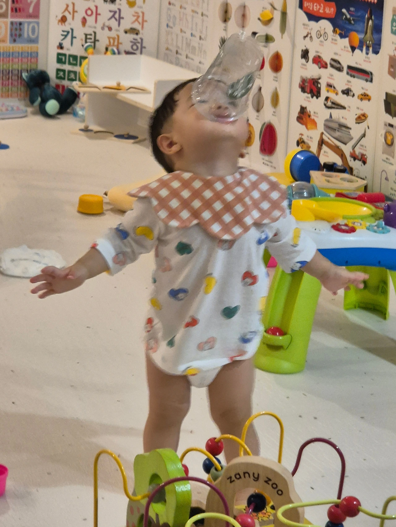 귀여운 녀석. 처음에는 어설프게 컵을 들어 올리더니, 이제는 곧잘 따라 한다. 컵의 입구가 어딨는지도 알려주었더니 컵 방향에 맞추어 꿀꺽.