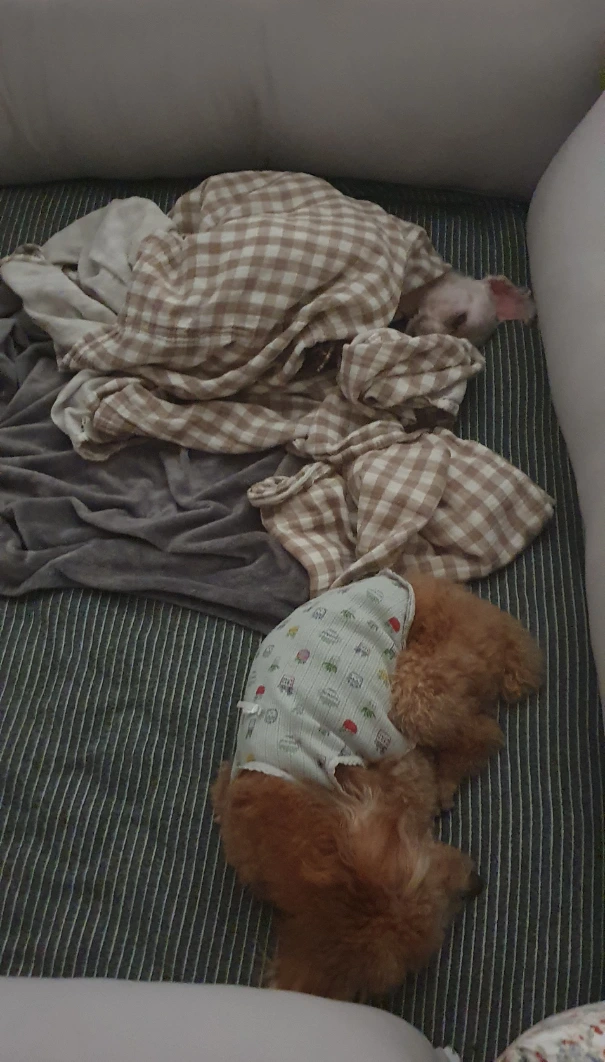 누군가는 '그냥 강아지를 돌보는 게 뭐가 어려워?'라고 반문할 수 있겠으나, 18살과 19살 슈퍼 노견 두 마리를 주보호자인 아내 없이 혼자 돌보기란 결코 쉬운 일이 아니었다.