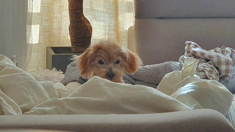 나이가 들면 사람 성격이 변하듯, 푸돌이 녀석도 성격이 많이 변한 걸까. 저녁이 되자 순한 양처럼 본인 자리로 돌아와서 곤히 자고 있다. 어쩜 이렇게 곤히 잘 자는지... 예전에 성격 까칠한 씅질 드러운 도련님이었다는 게 놀랍기만 하다.