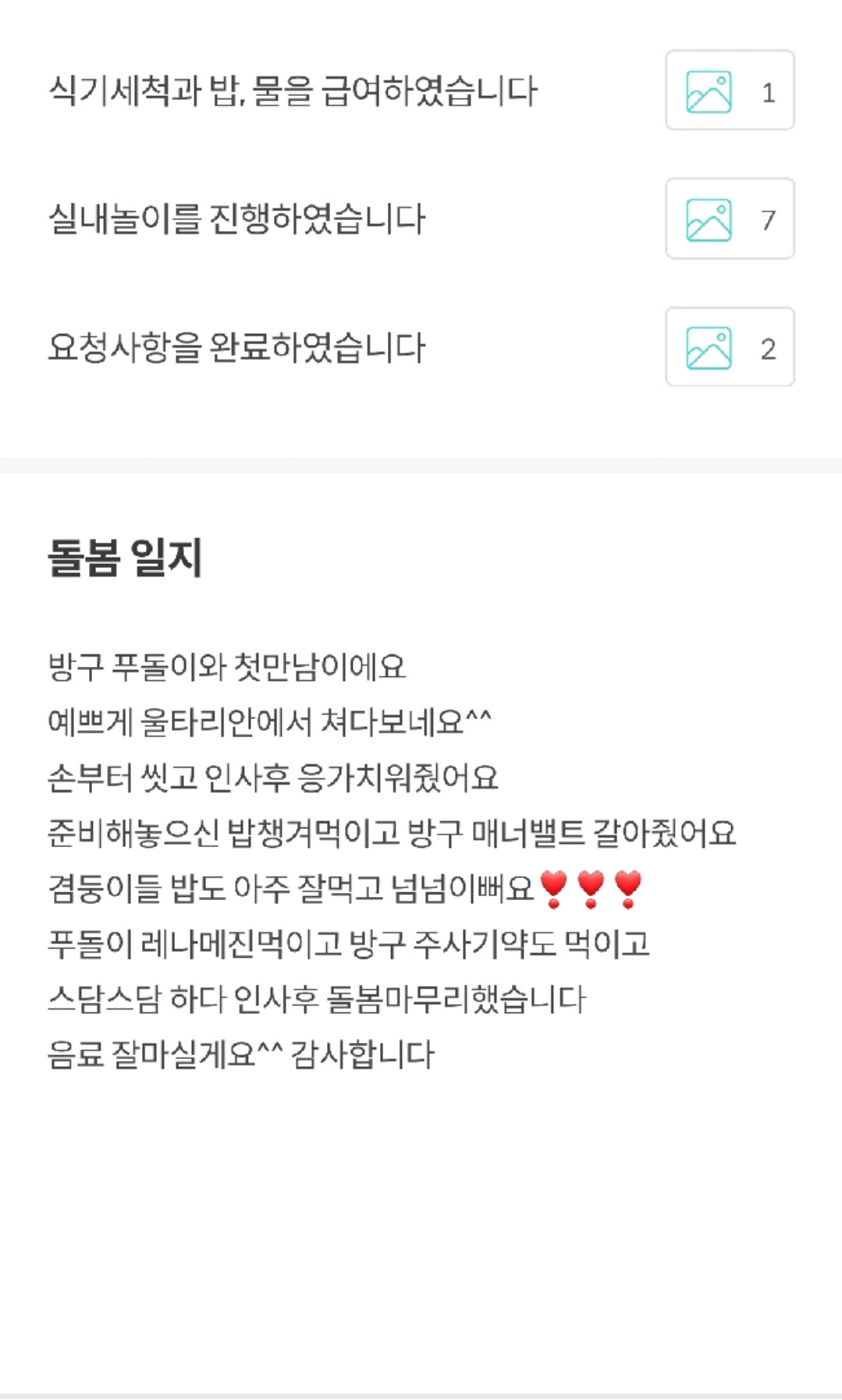 펫시터는 이후에도 쭉 이용하지 않을까 싶다.