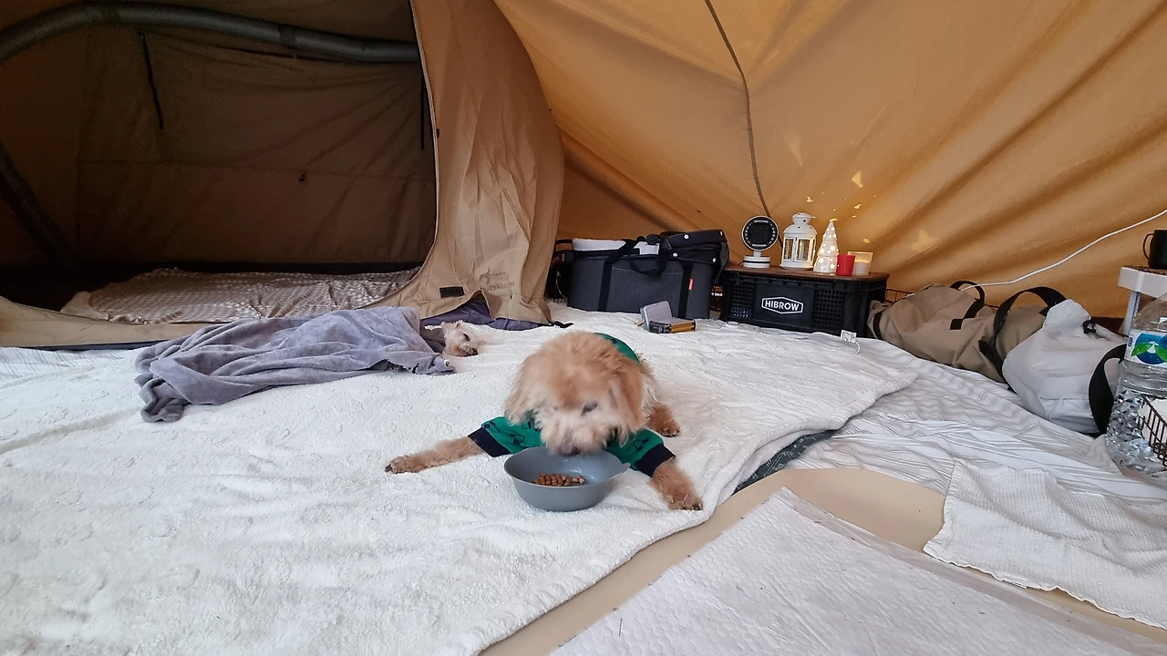 심지어는 불안함에 자주 짖던 방구조차 훨씬 덜 짖었다. 이게 무슨 일인지, 방구 어르신이 텐트 생활에 꽤 만족하신 모양이었다.