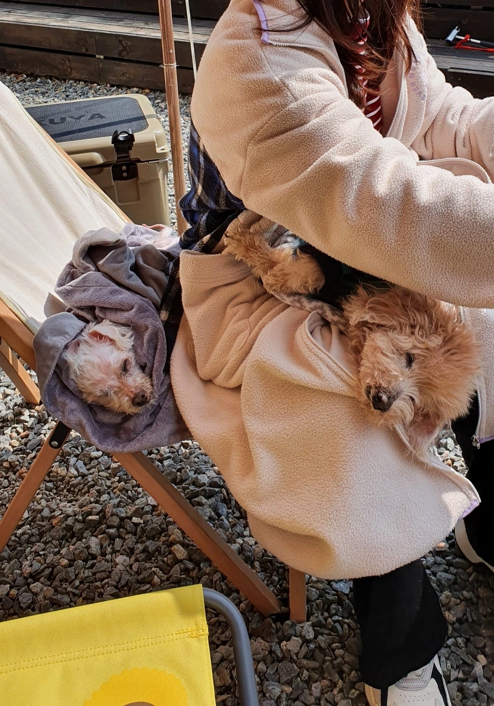 심지어는 다른 강아지들이 우리 텐트에 자연스럽게 들락날락했는데 아내는 그 아이들을 반겨주고 환대해주었다. 우리 푸구도 다른 데 놀러 가면 특유의 귀여움으로 환영받았을 텐데... 녀석들은 놀러 가질 못하니, 뉴페이스 푸구가 궁금한 여러 멍뭉이들의 발길이 계속 이어졌다.